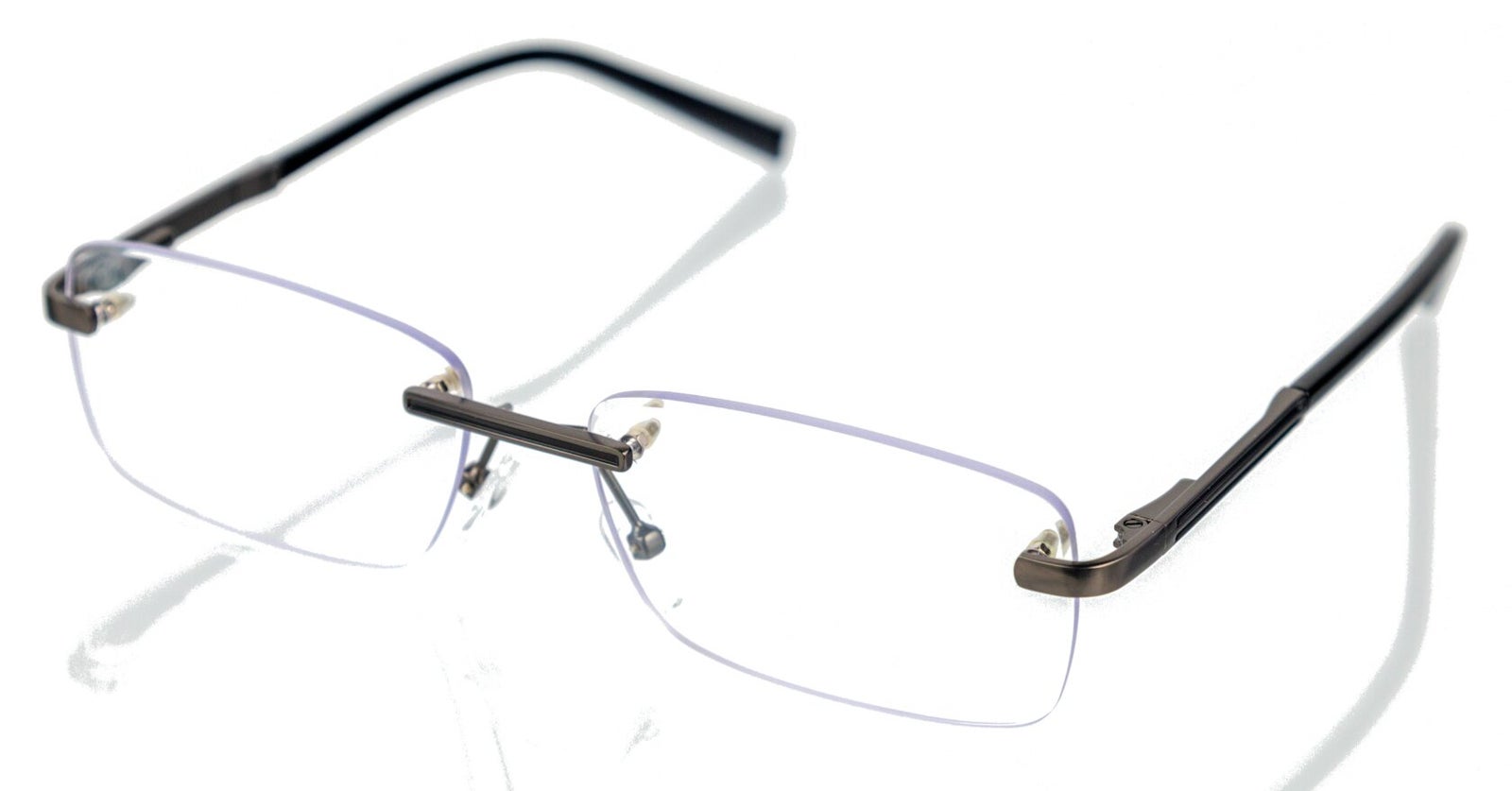 Gafas de tres piezas, rectangular sin marco, constituida en metal, flexible y resistente, ideal para lectura o visión cercana. 12 meses de garantía.