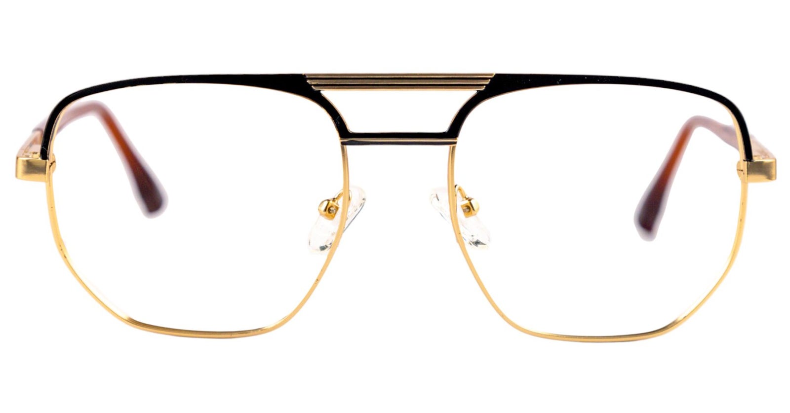 Montura de gafas con forma Hexagonales estilo de marco Completo, de colores Negro, Cafe, Dorado