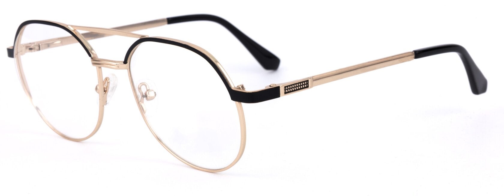 Montura de gafas con forma Piloto/Aviador estilo de marco Completo, de colores Negro, Dorado