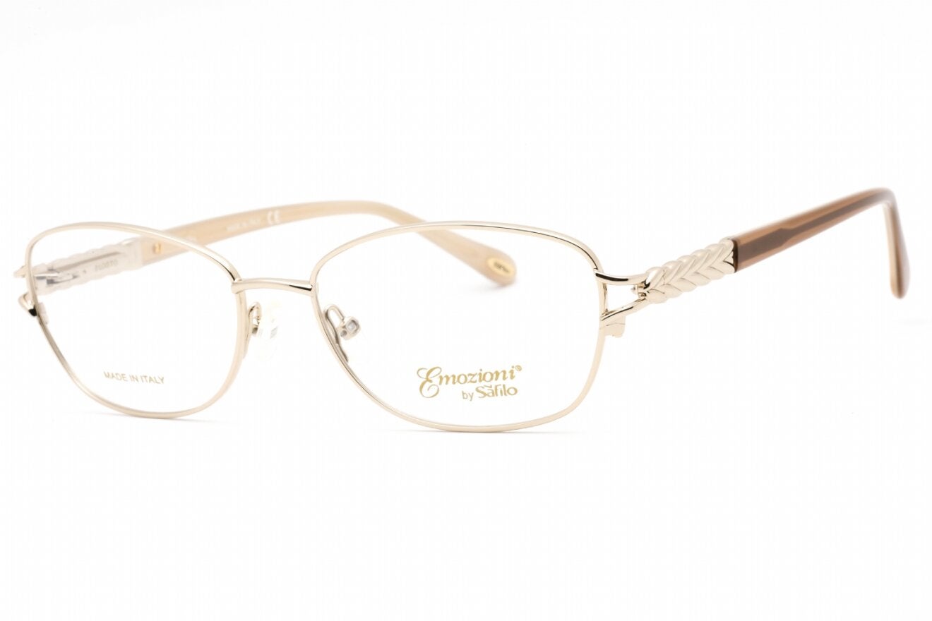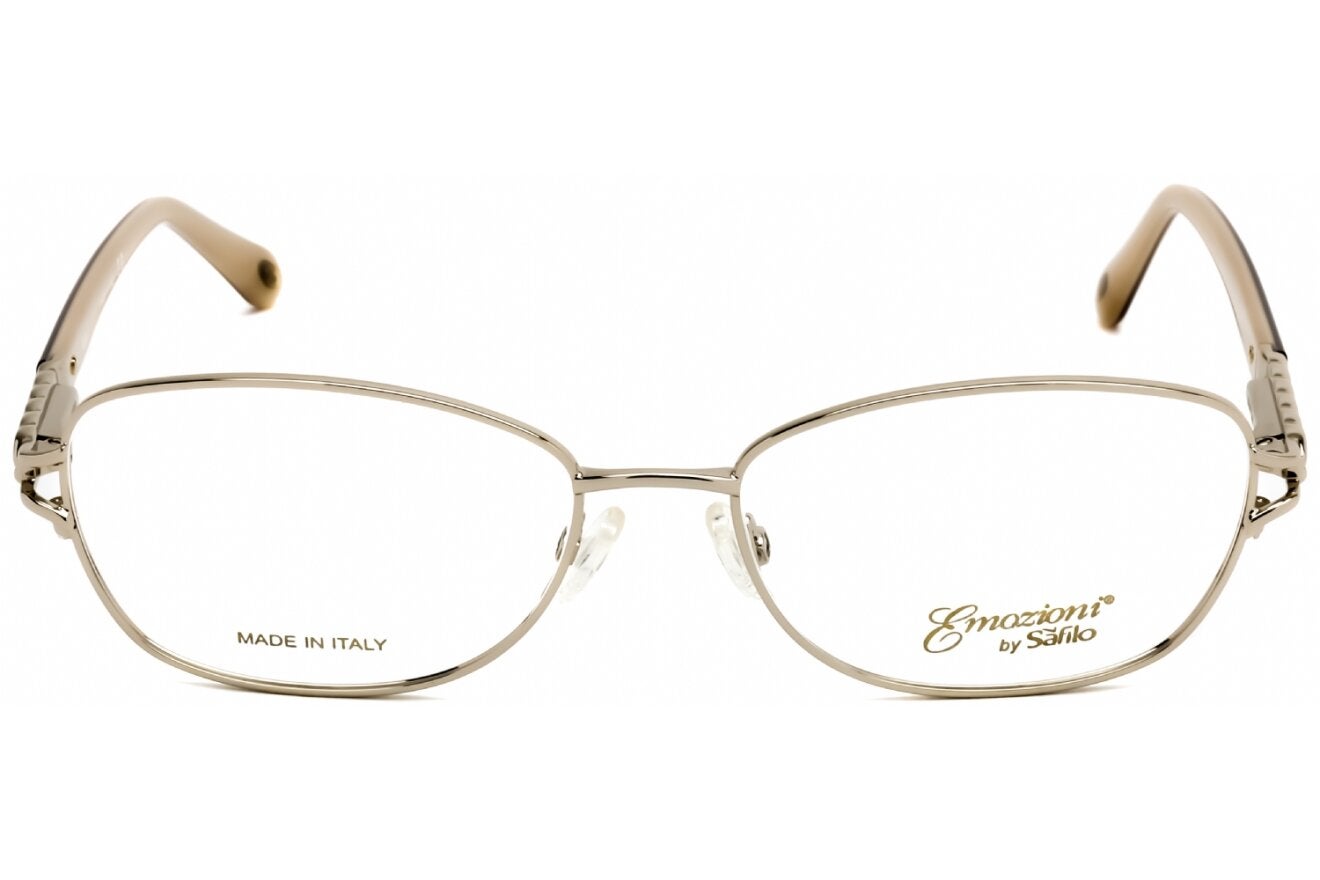 Montura de gafas marca EMOZIONI con forma Ovalada estilo de marco Completo, de colores Crema, Plata