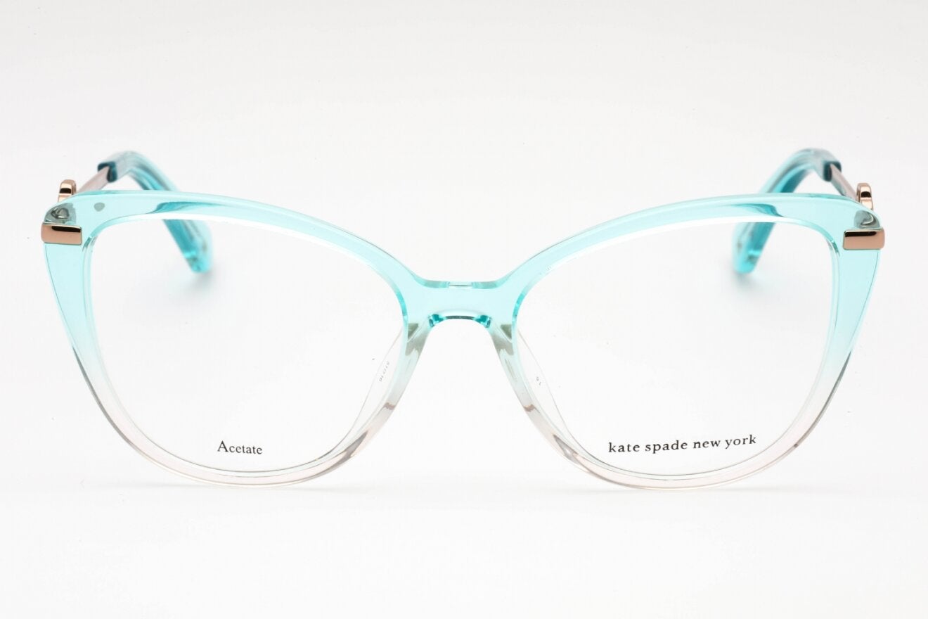 Montura de gafas marca KATE SPADE con forma Agatada estilo de marco Al aire, de colores Azul Claro, Transparente