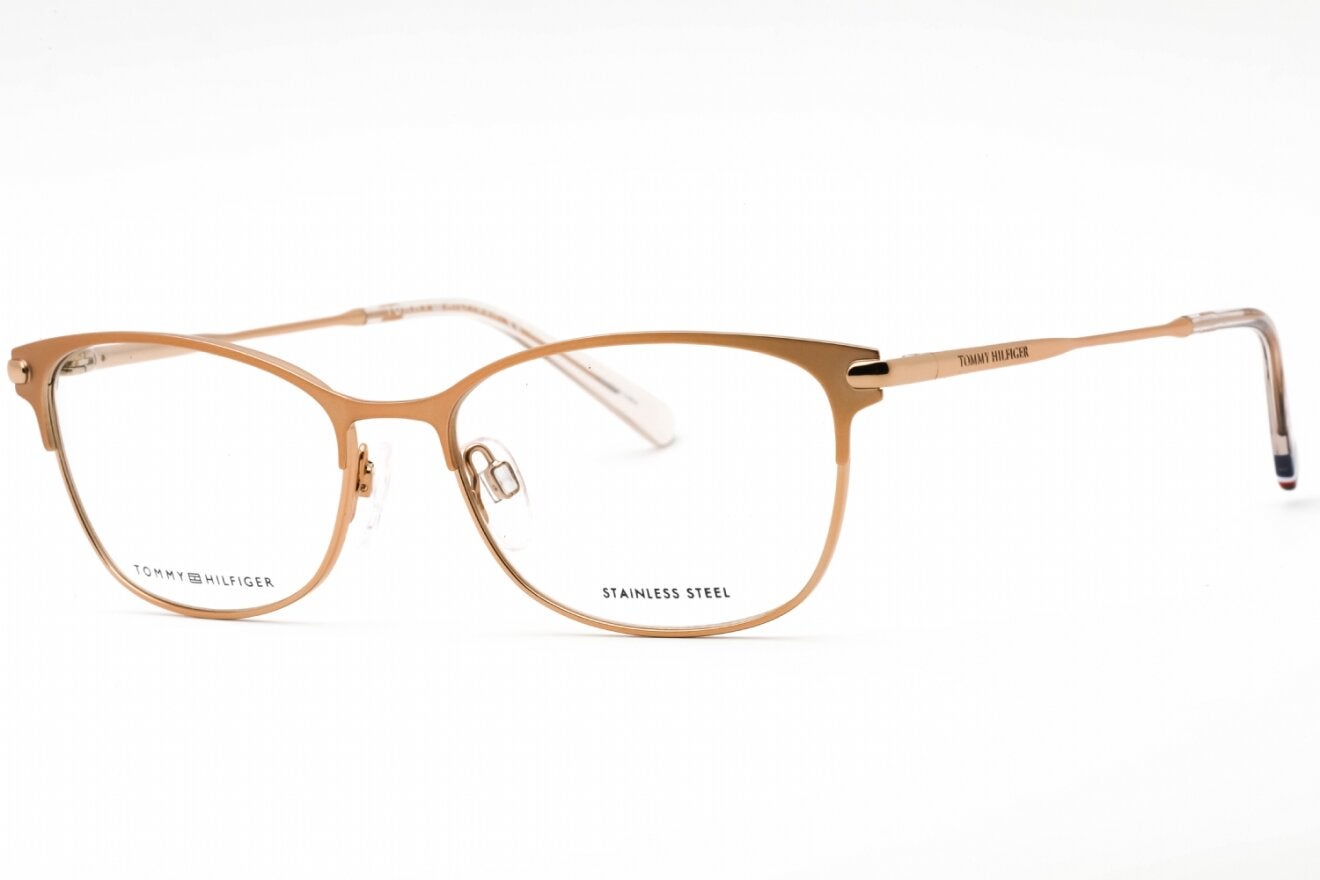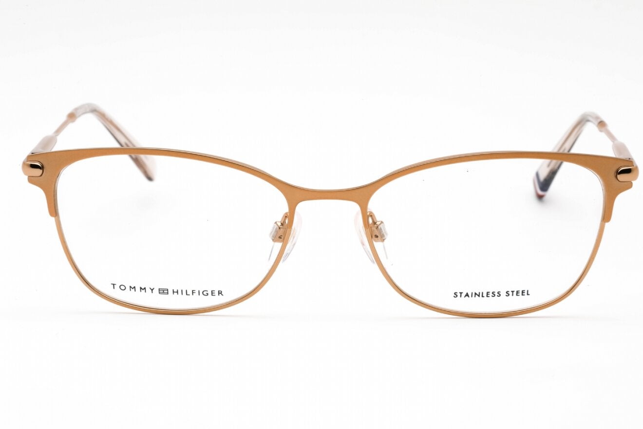 Montura de gafas marca TOMMY HILFIGER con forma Clubmaster estilo de marco Media Montura, de colores Plata, Nude
