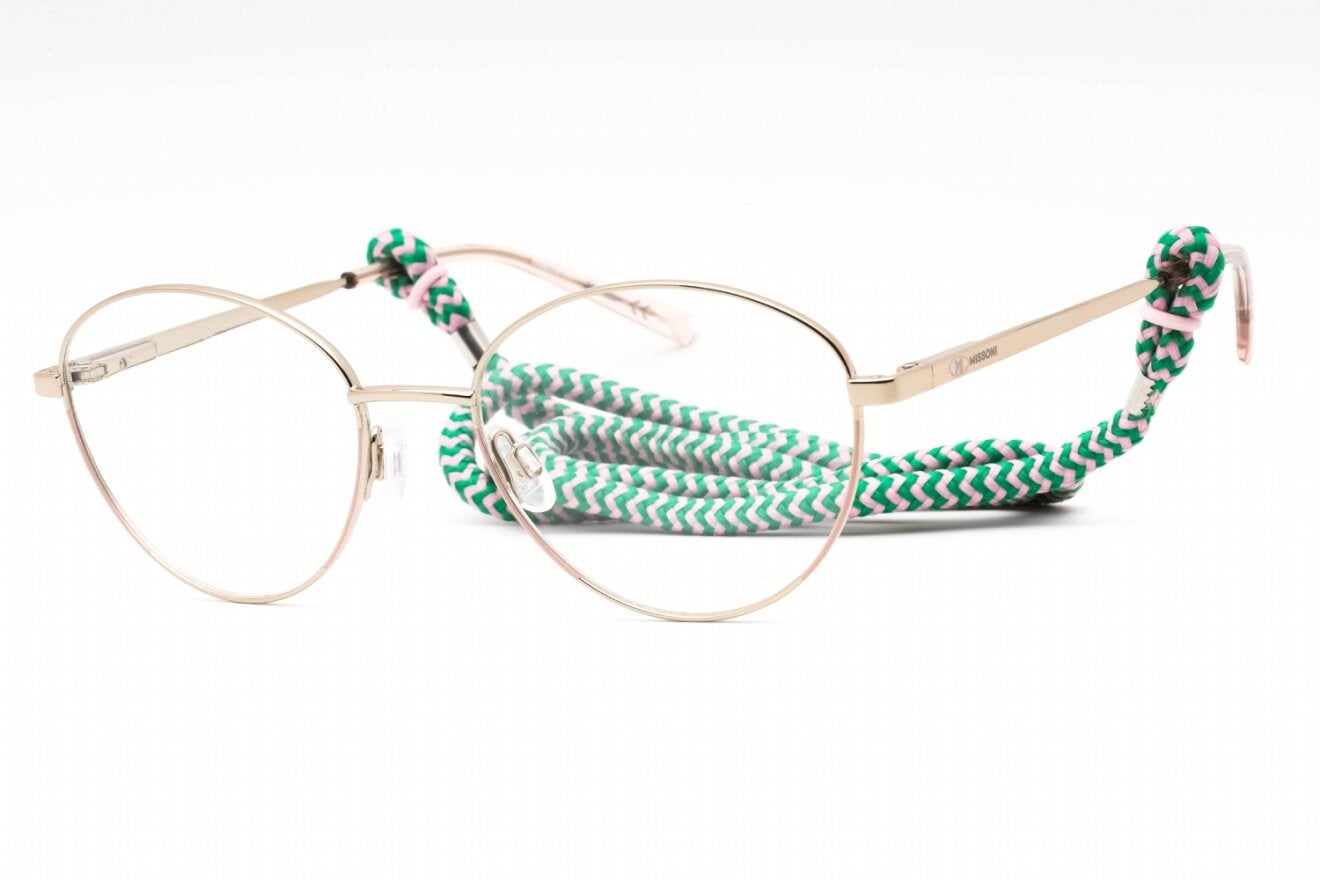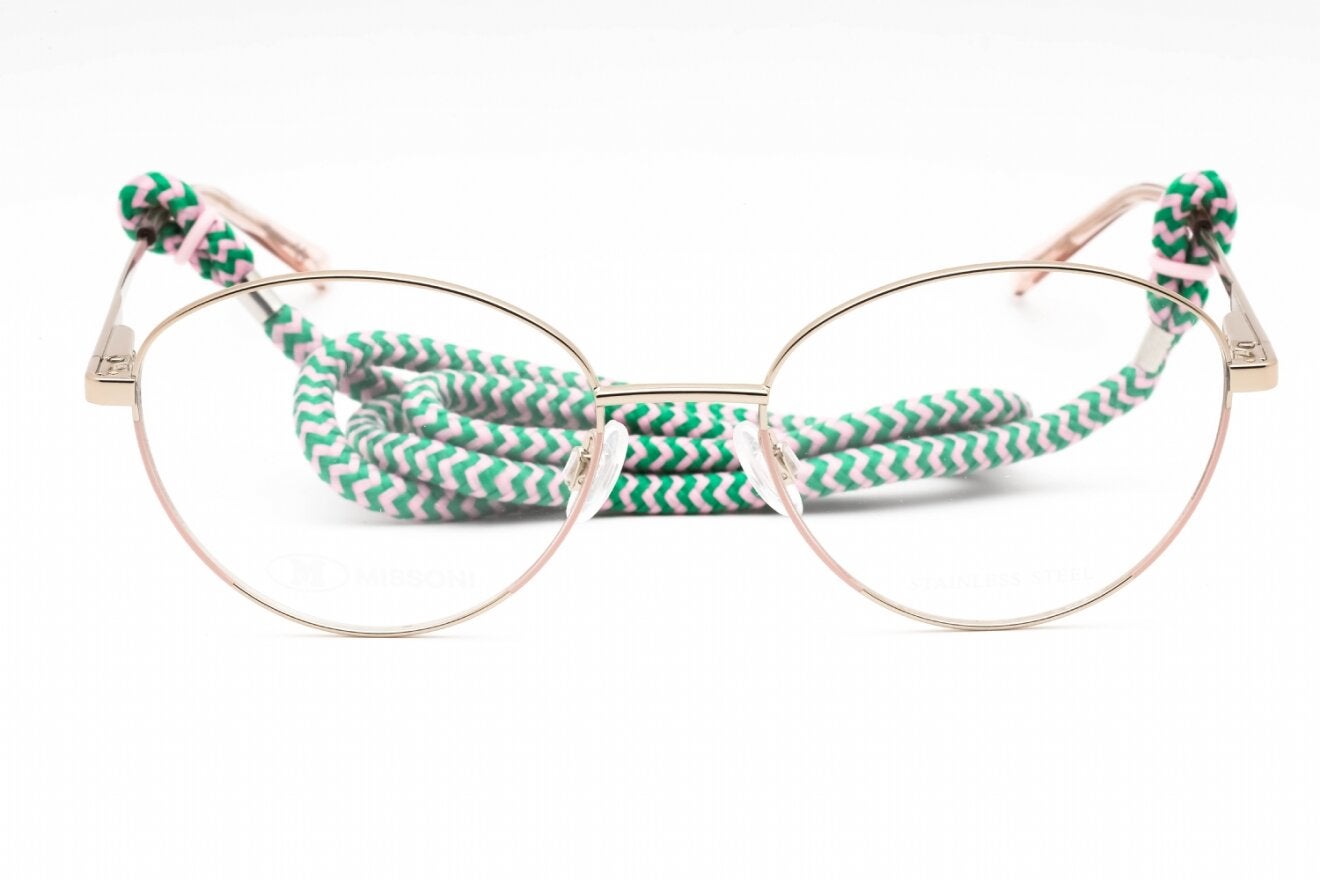 Montura de gafas marca M MISSONI con forma Ovalada estilo de marco Completo, de colores Plata, Verde Aguamarina