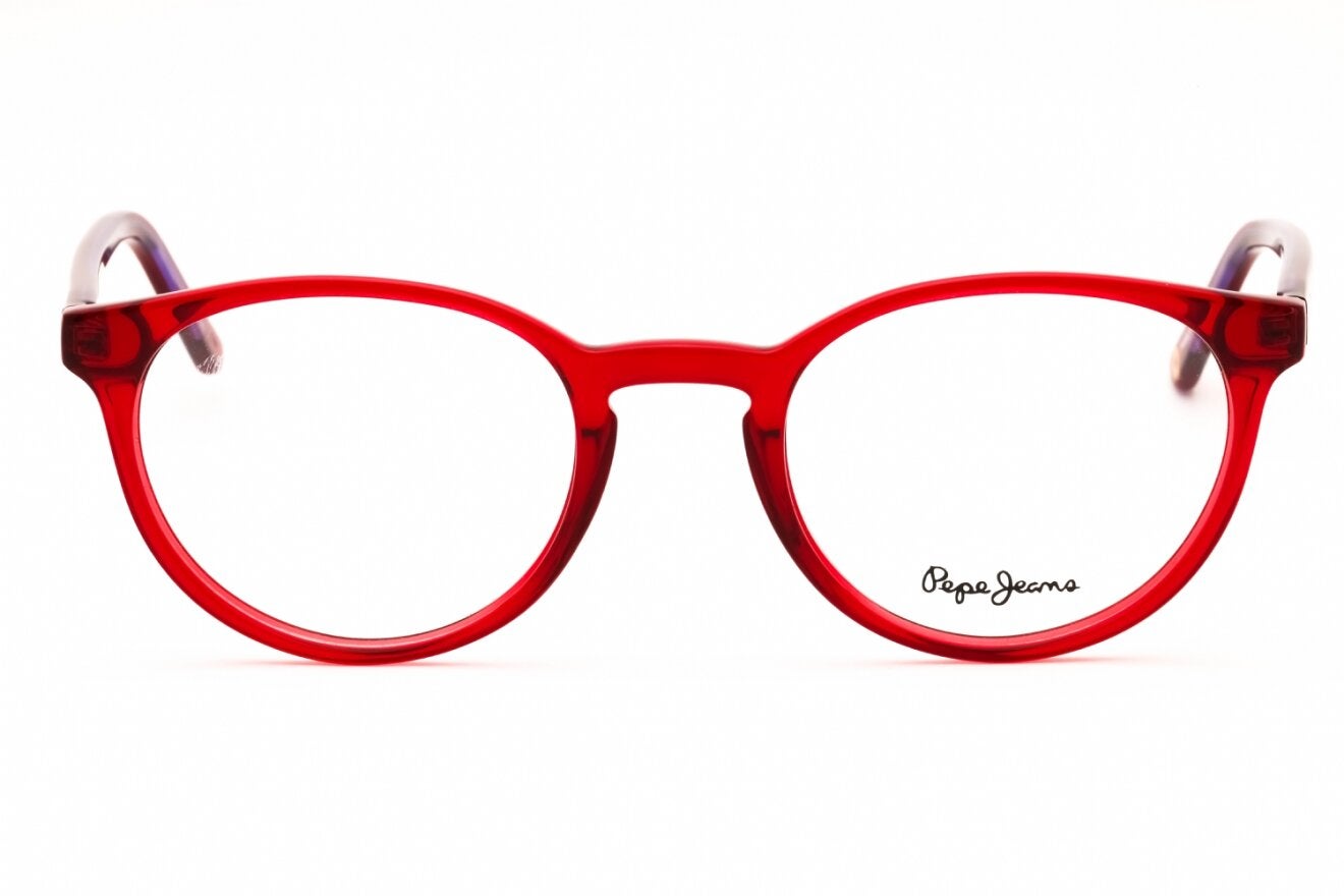 Montura de gafas marca PEPE JEANS con forma Redonda estilo de marco Completo, de color Rojo