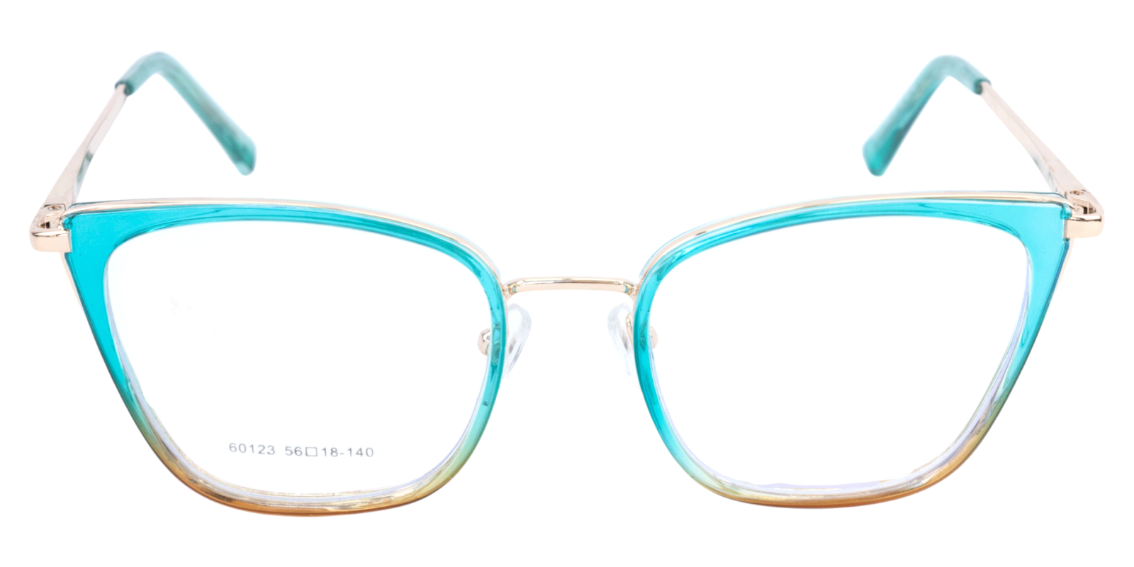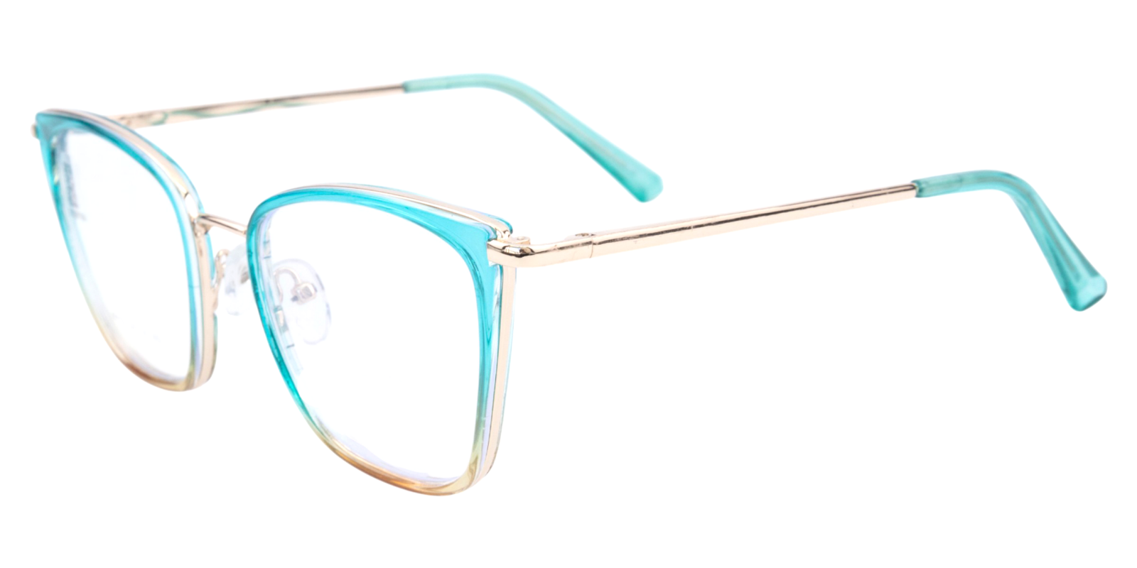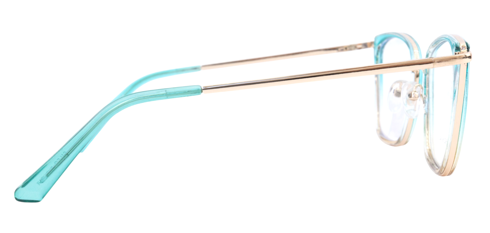 Montura de gafas con forma Semiagatada estilo de marco Completo, de colores Dorado, Verde Aguamarina con soporte de nariz de plaquetas