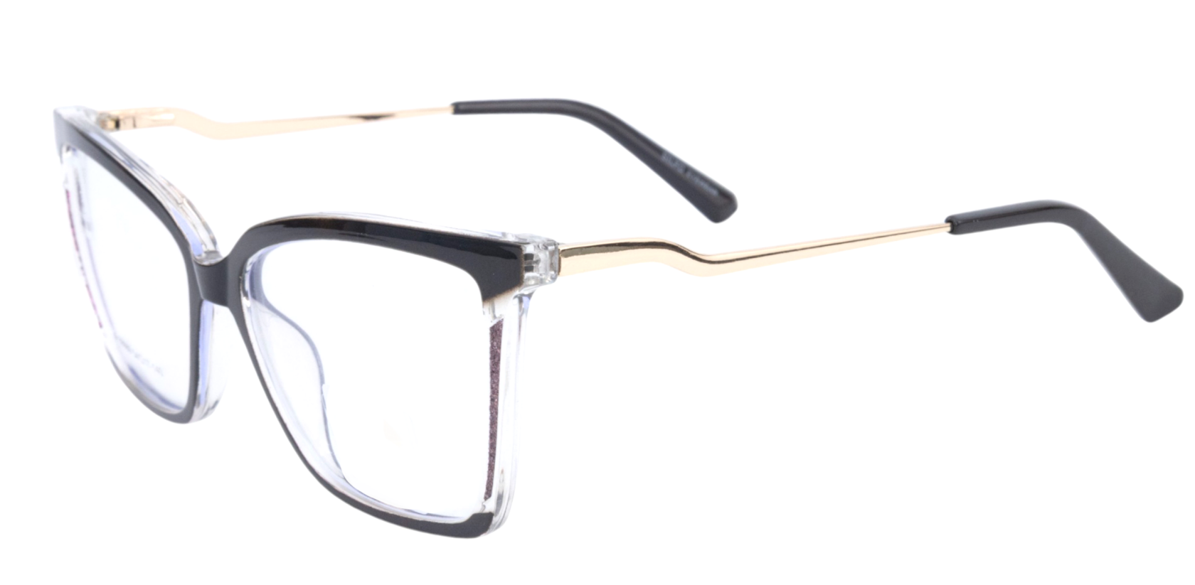 Montura de gafas con forma Semiagatada estilo de marco Completo, de colores Negro, Transparente, Dorado con soporte de nariz de puente anatómico