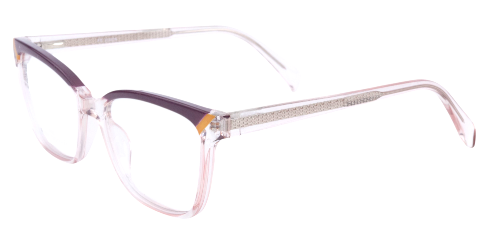 Montura de gafas con forma Rectangular estilo de marco Completo, de colores Morado, Rosado, Transparente, Naranja