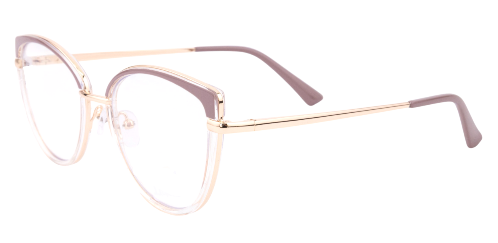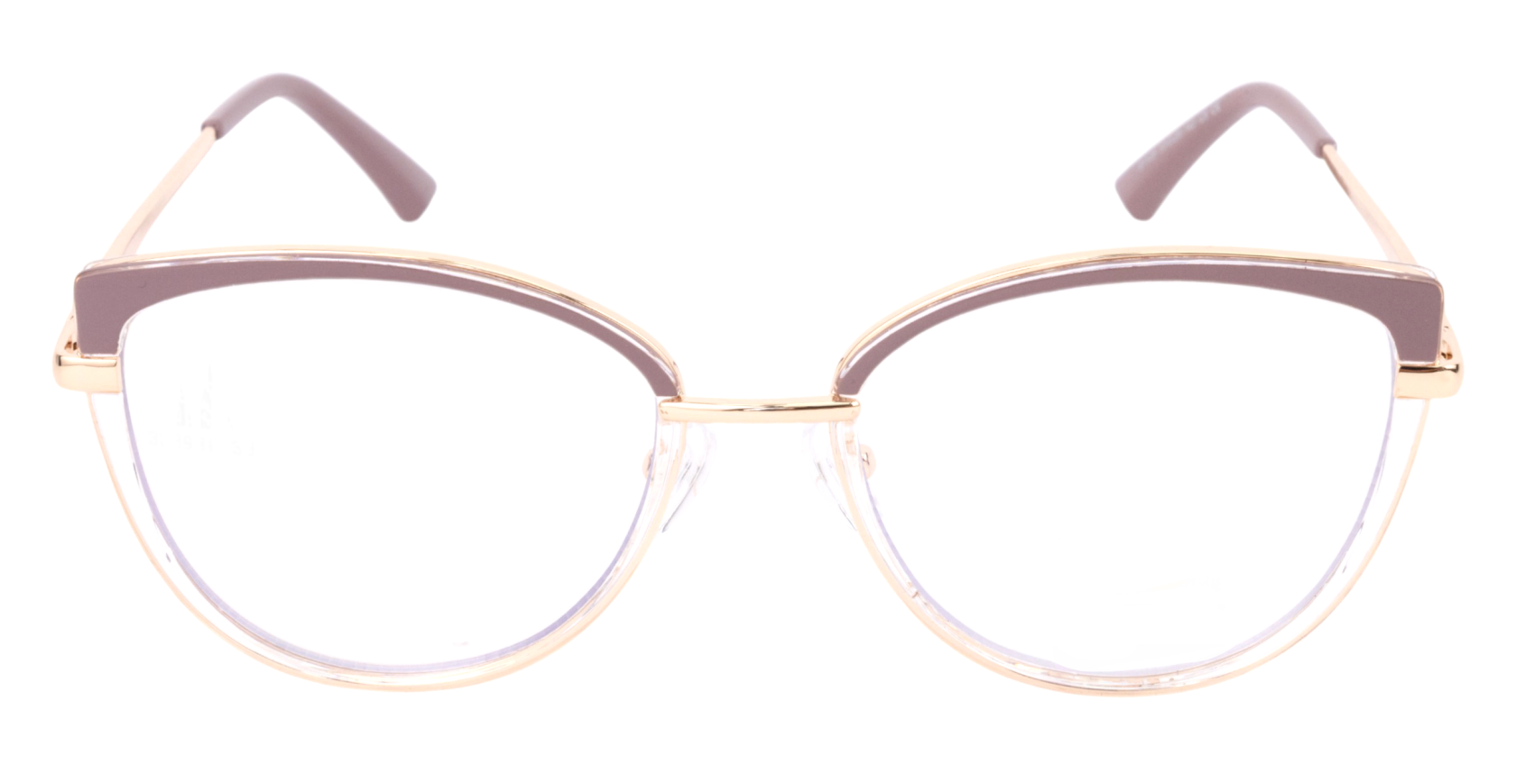 Montura de gafas con forma Agatada estilo de marco Completo, de colores Transparente, Dorado, Lila con soporte de nariz de plaquetas