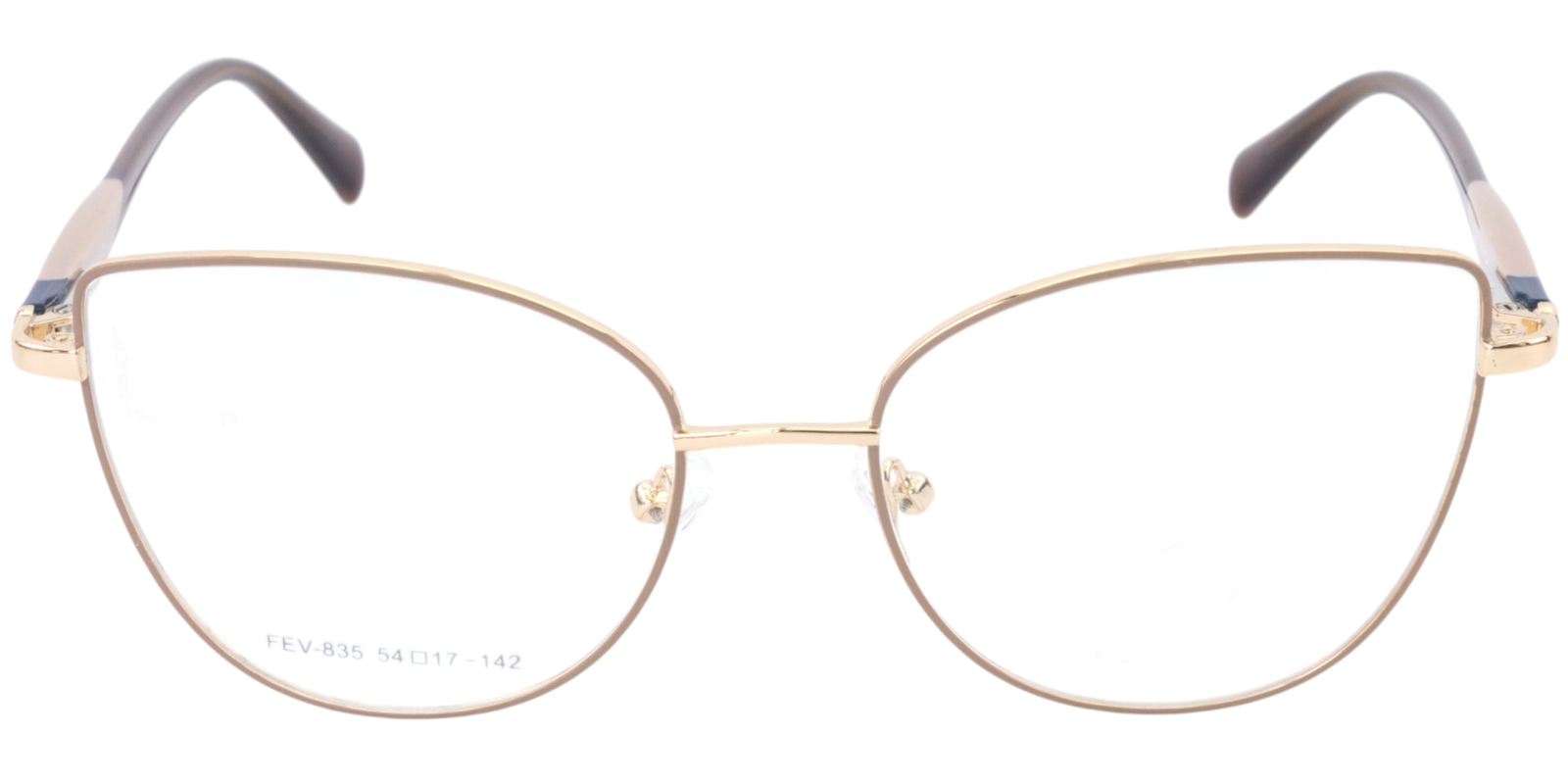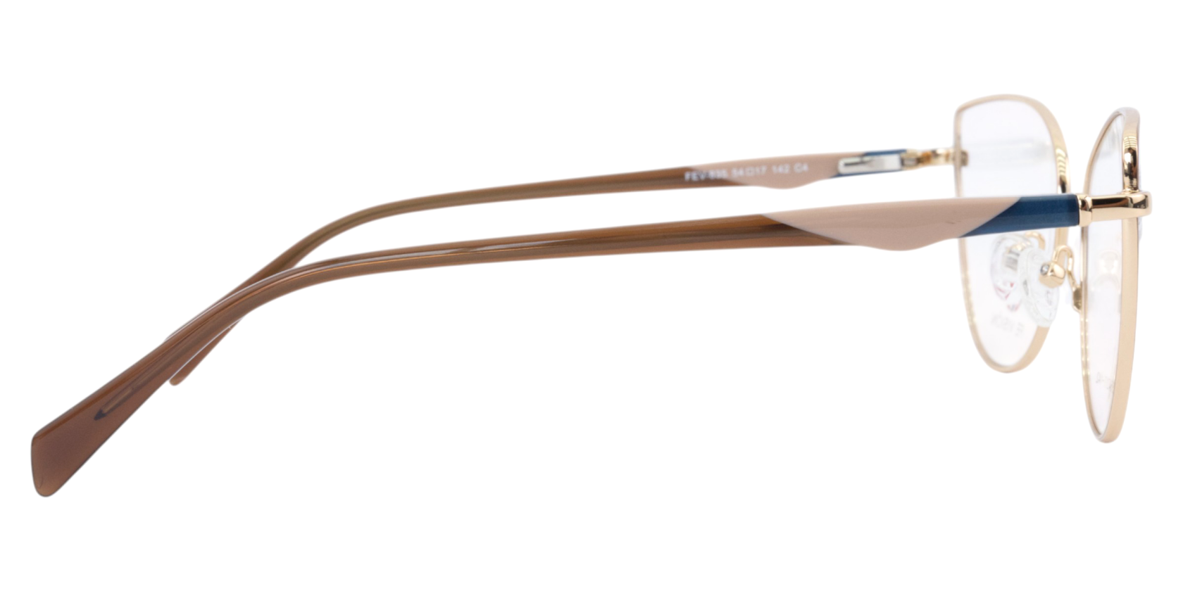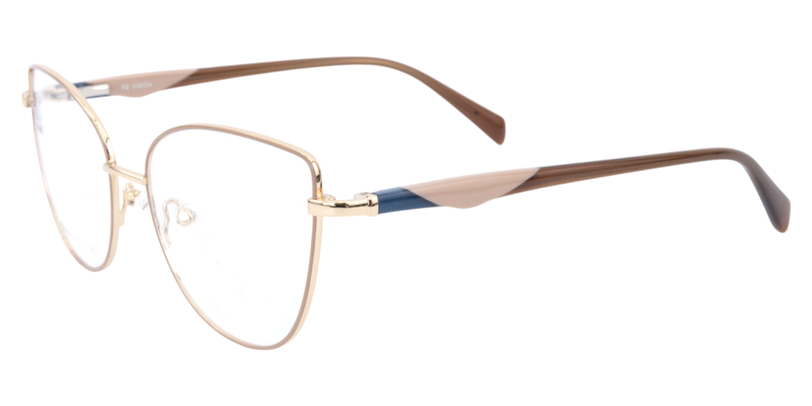 Montura de gafas con forma Agatada estilo de marco Completo, de colores Crema, Cafe, Dorado, Azul Oscuro con soporte de nariz de plaquetas