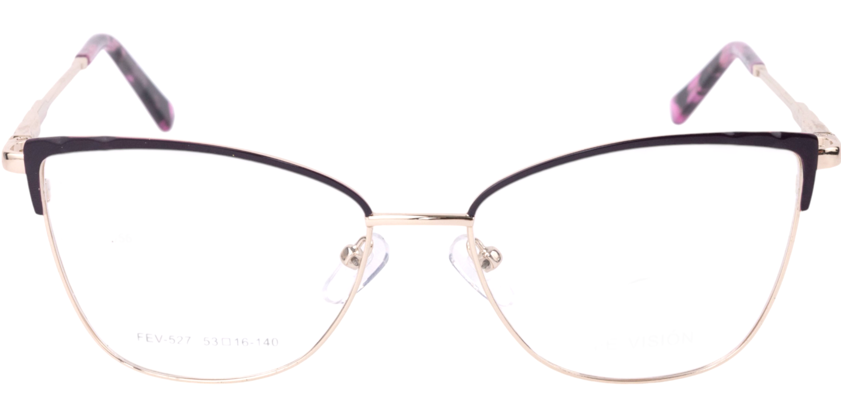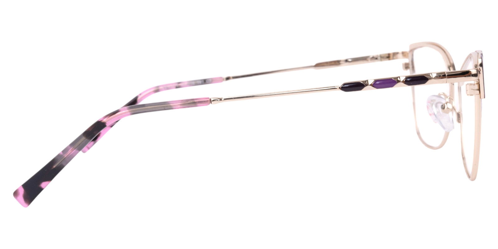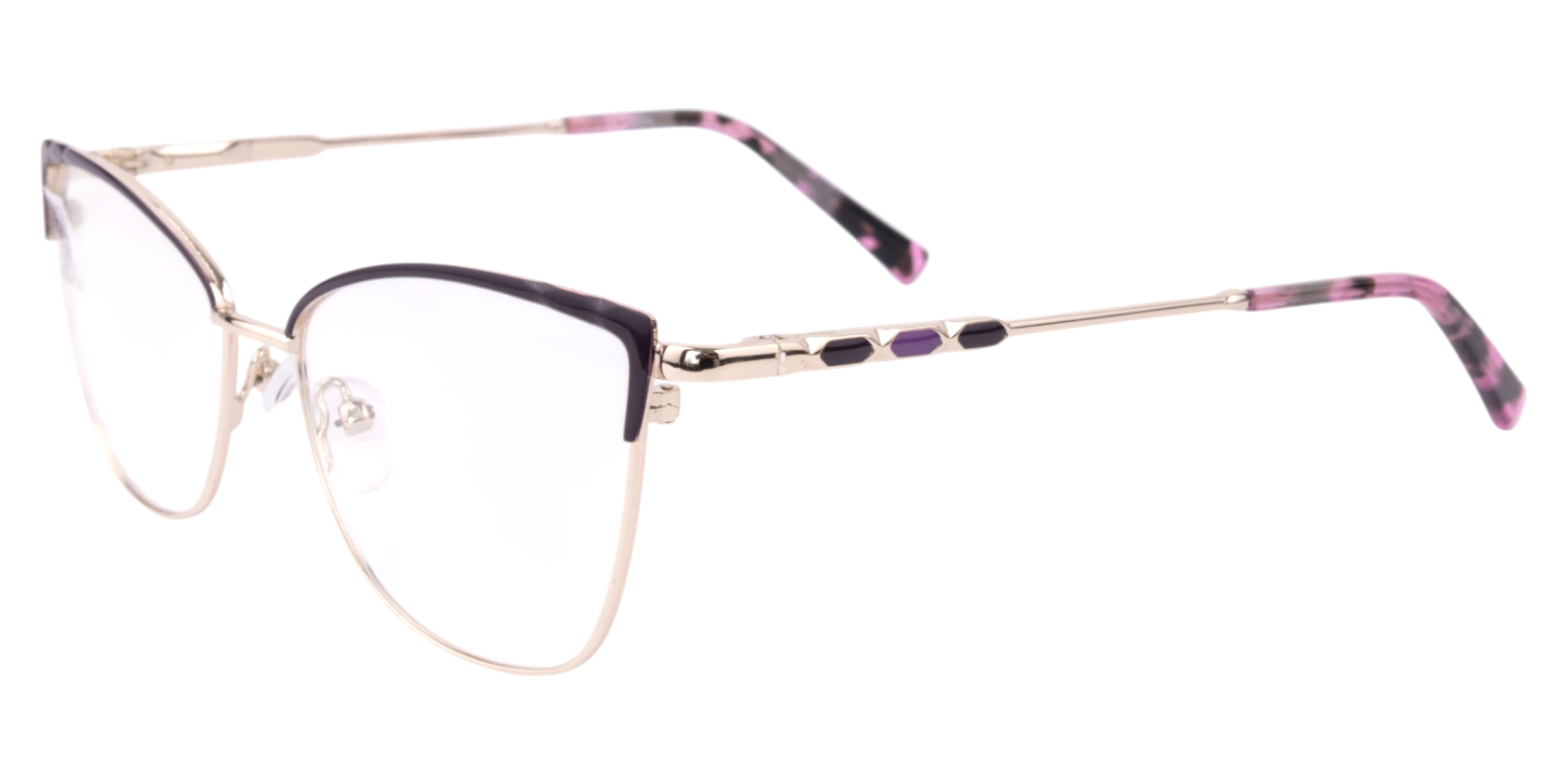 Montura de gafas con forma Agatada estilo de marco Completo, de colores Morado, Plata con soporte de nariz de plaquetas