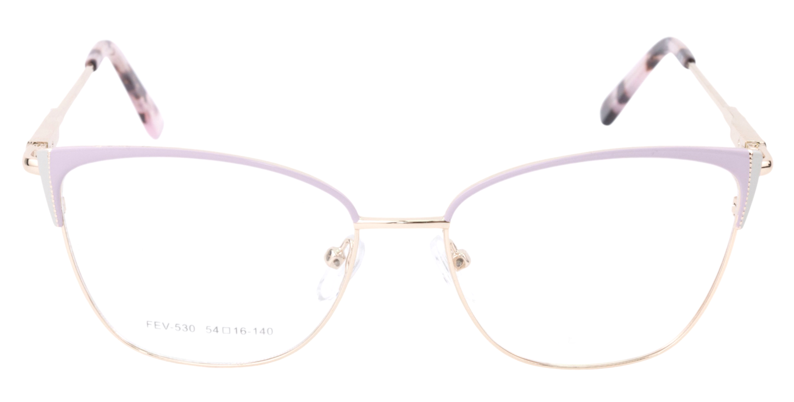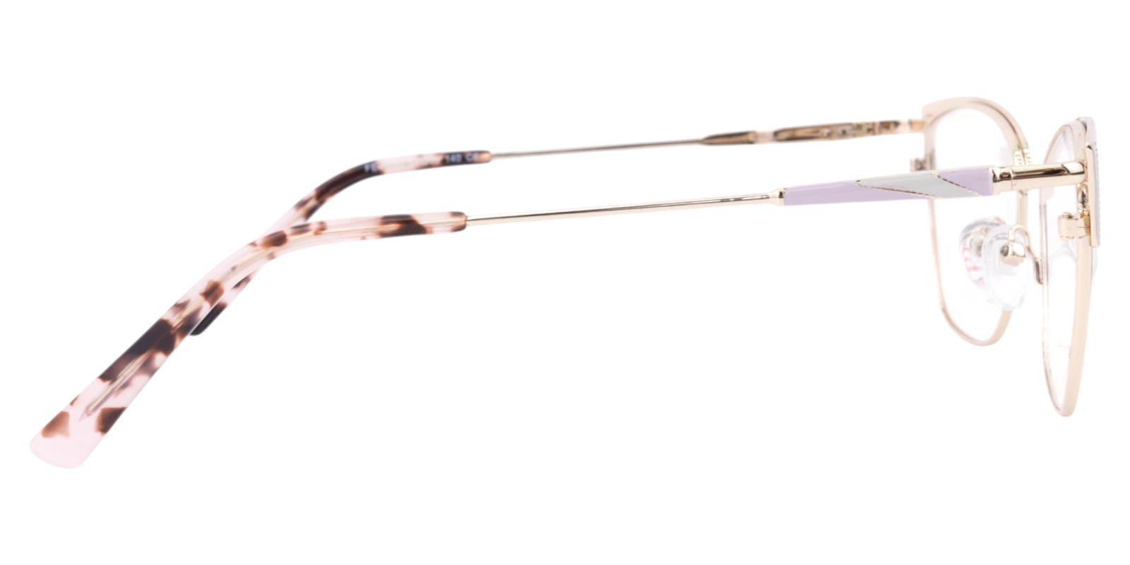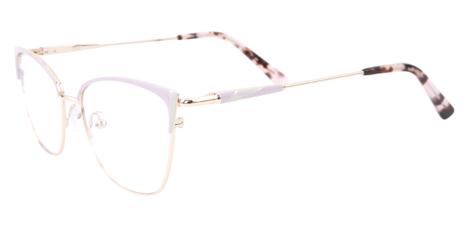Montura de gafas con forma Agatada estilo de marco Completo, de colores Dorado, Lila con soporte de nariz de plaquetas