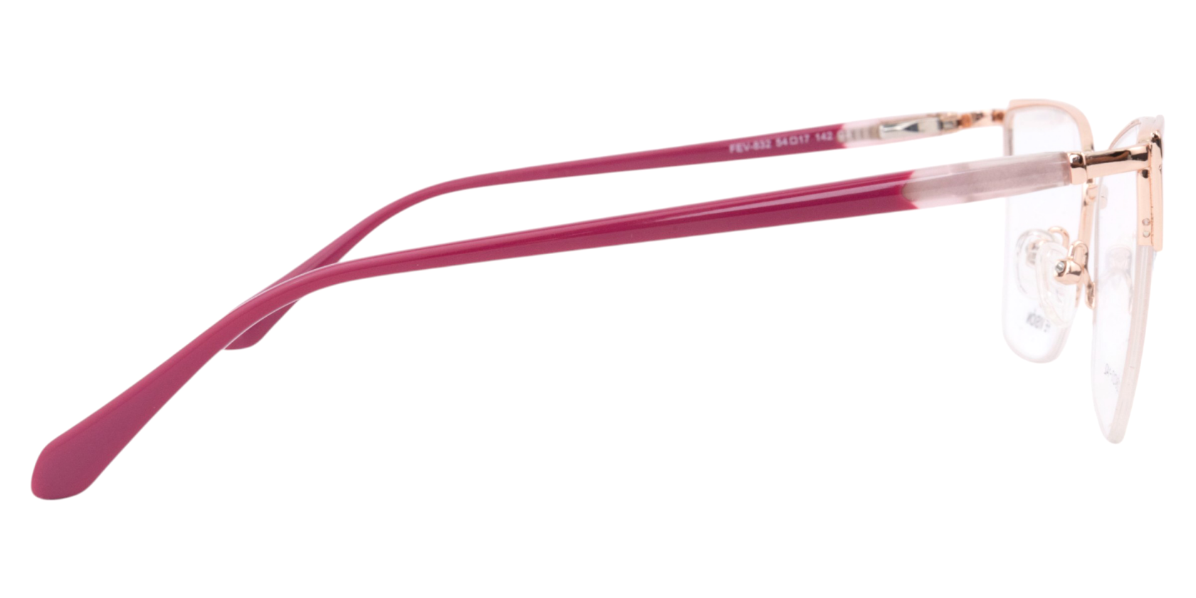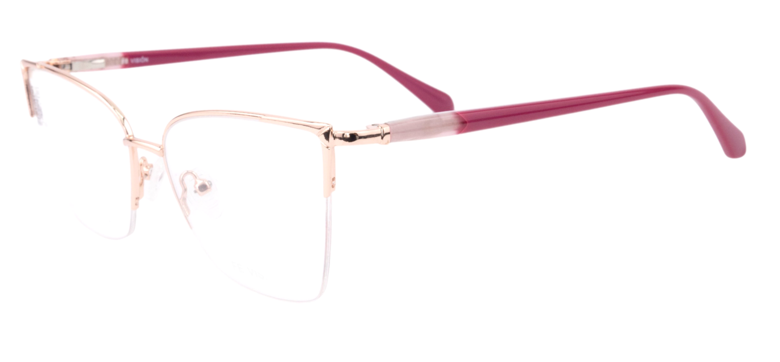 Montura de gafas con forma Semiagatada estilo de marco Media Montura, de colores Dorado, Fucsia con soporte de nariz de plaquetas