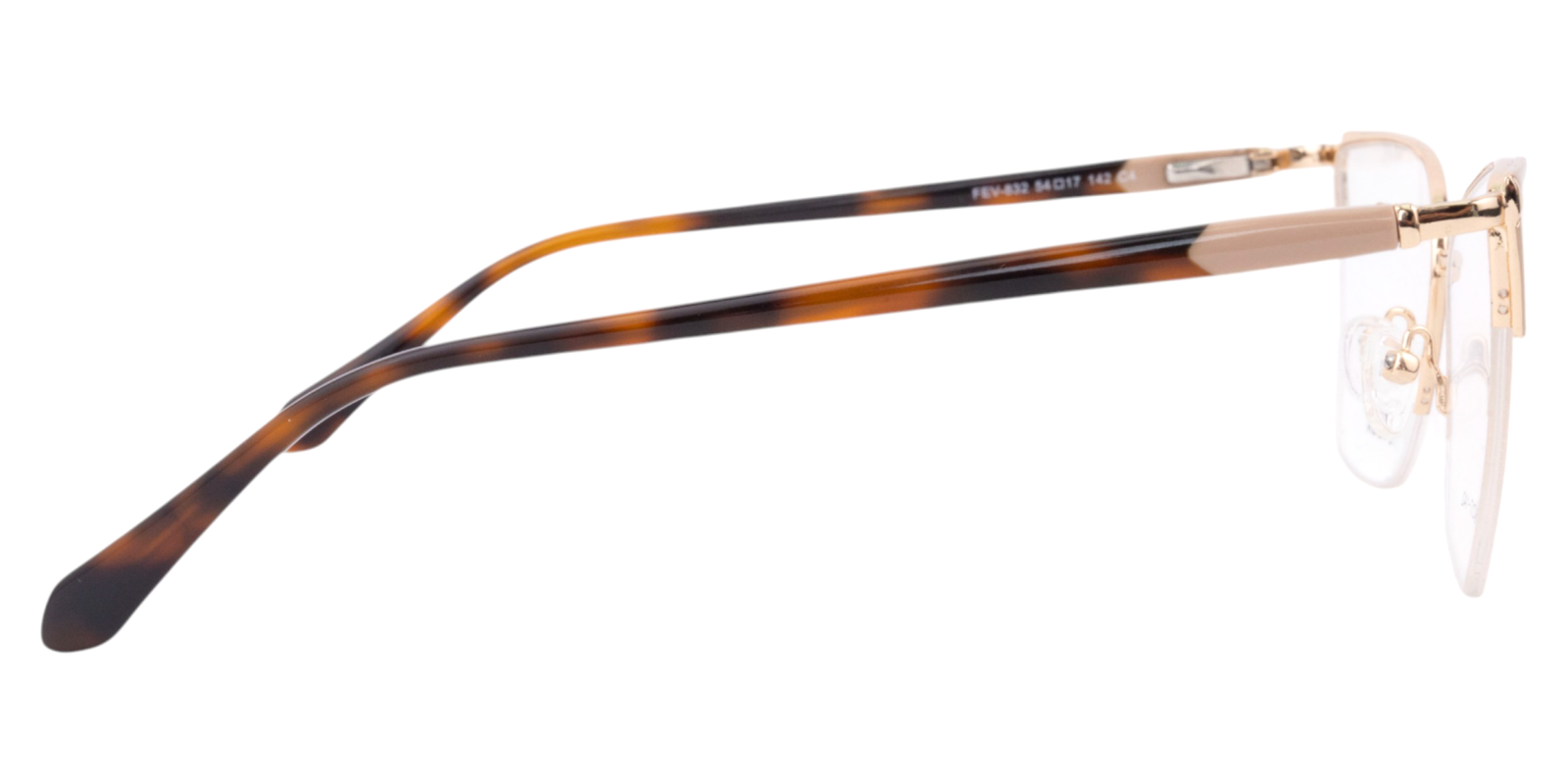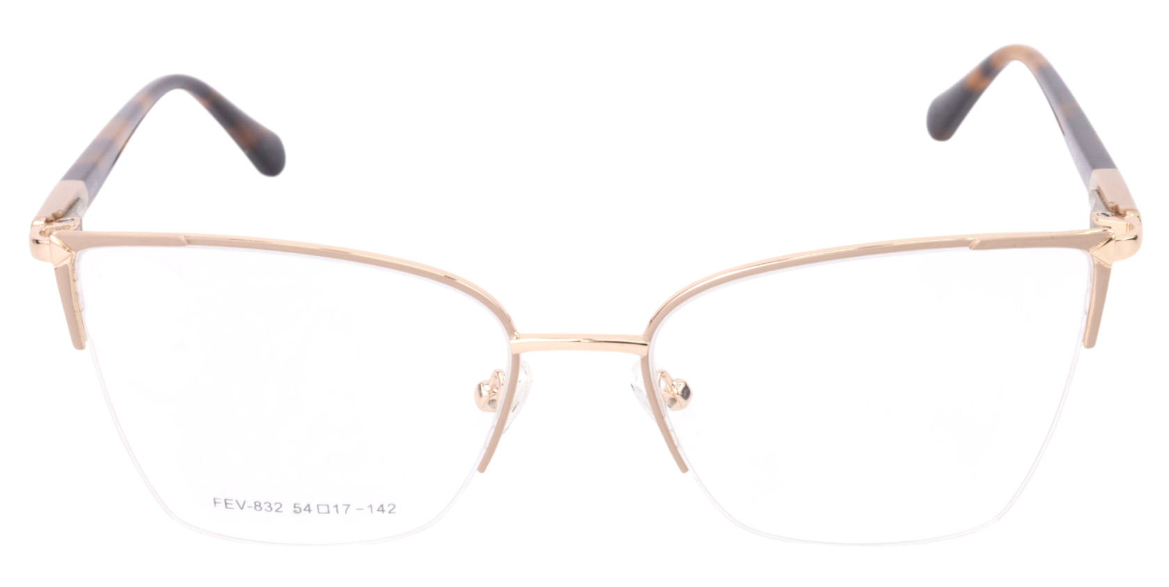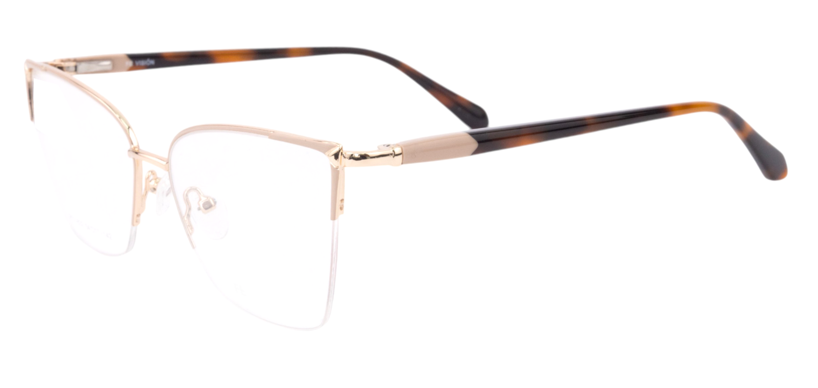 Montura de gafas con forma Semiagatada estilo de marco Media Montura, de colores Animal Print, Dorado con soporte de nariz de plaquetas