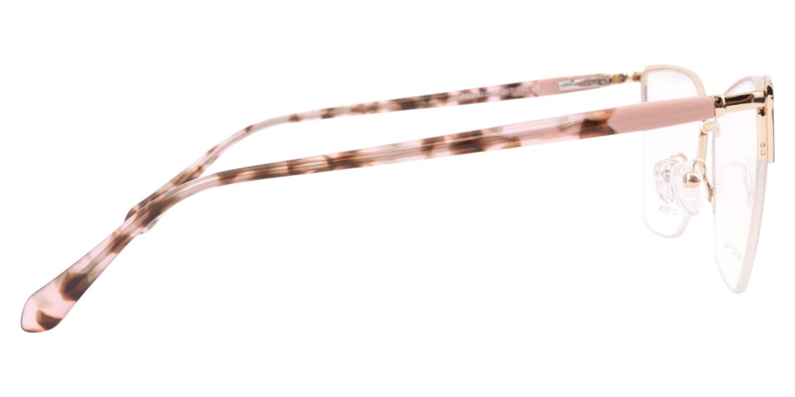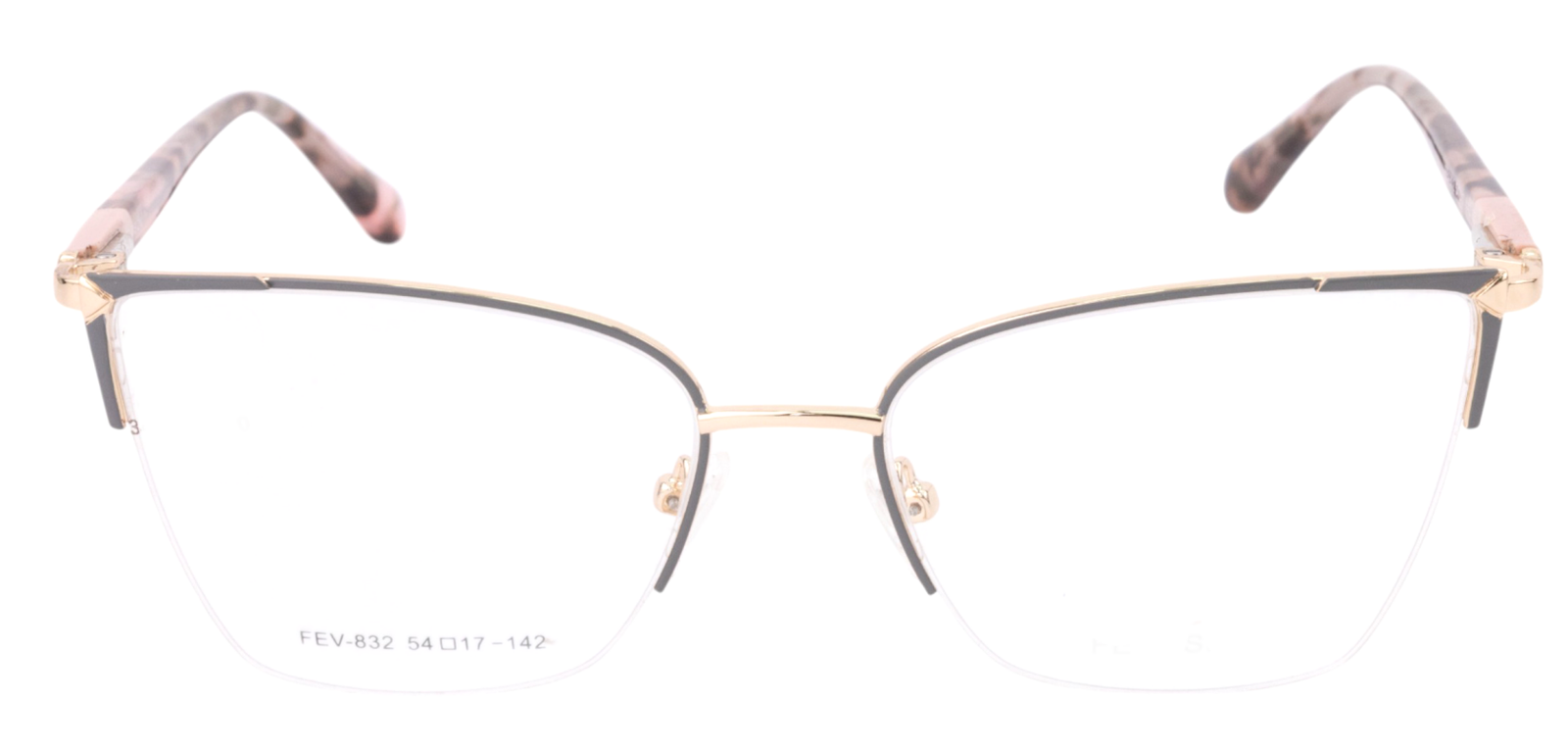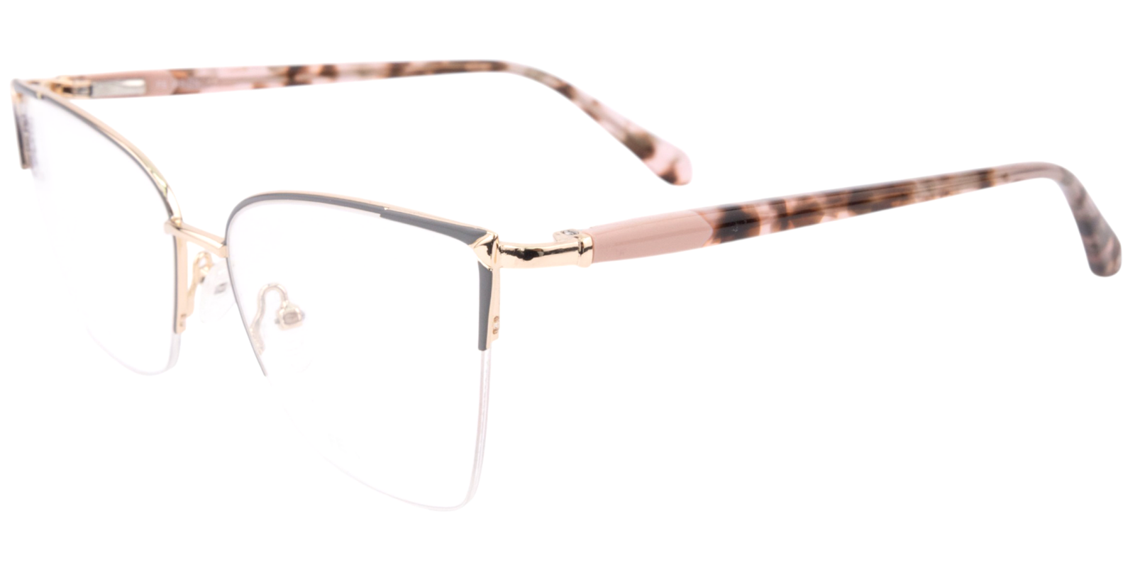 Montura de gafas con forma Semiagatada estilo de marco Media Montura, de colores Gris, Animal Print, Dorado, Palo rosa con soporte de nariz de plaquetas