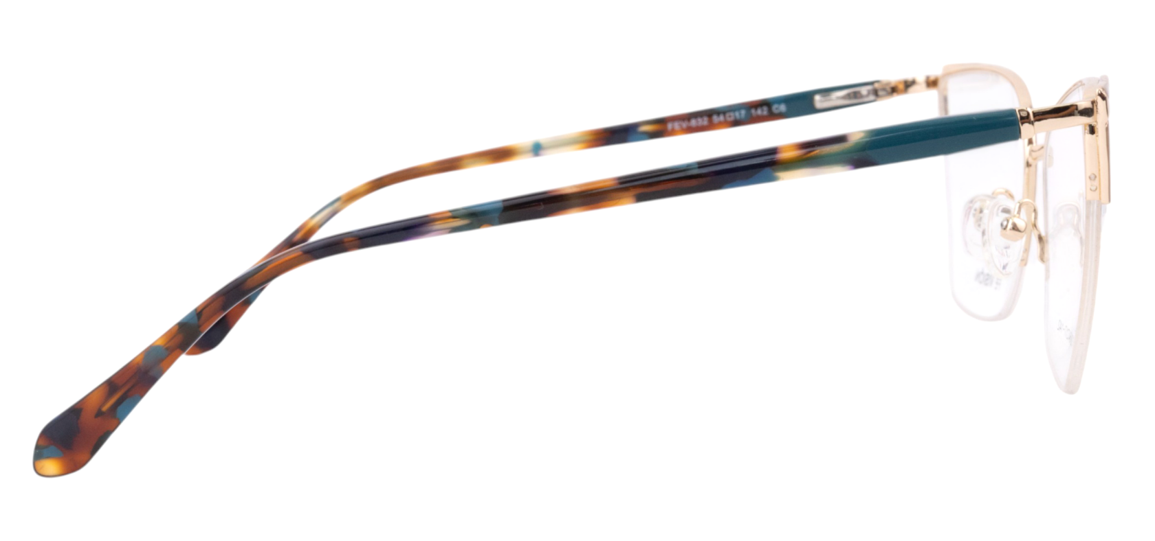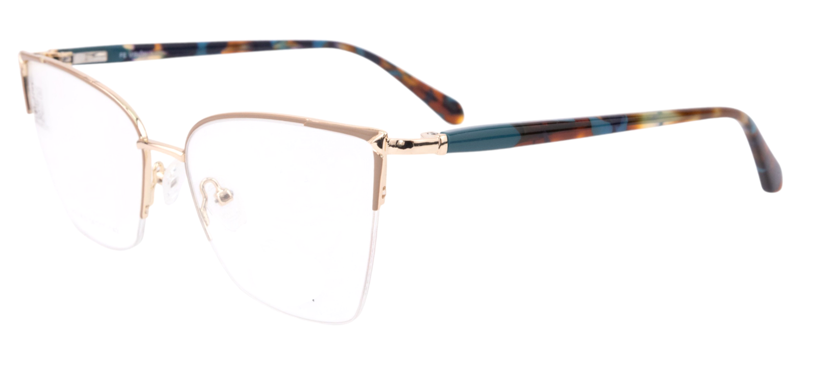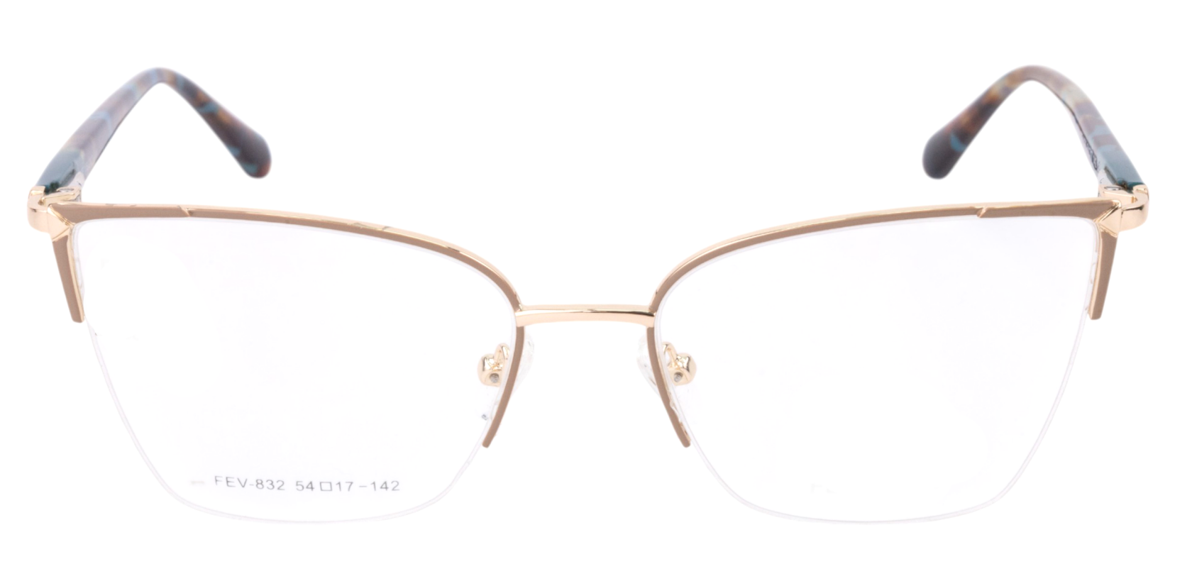 Montura de gafas con forma Semiagatada estilo de marco Media Montura, de colores Cafe, Animal Print, Dorado con soporte de nariz de plaquetas