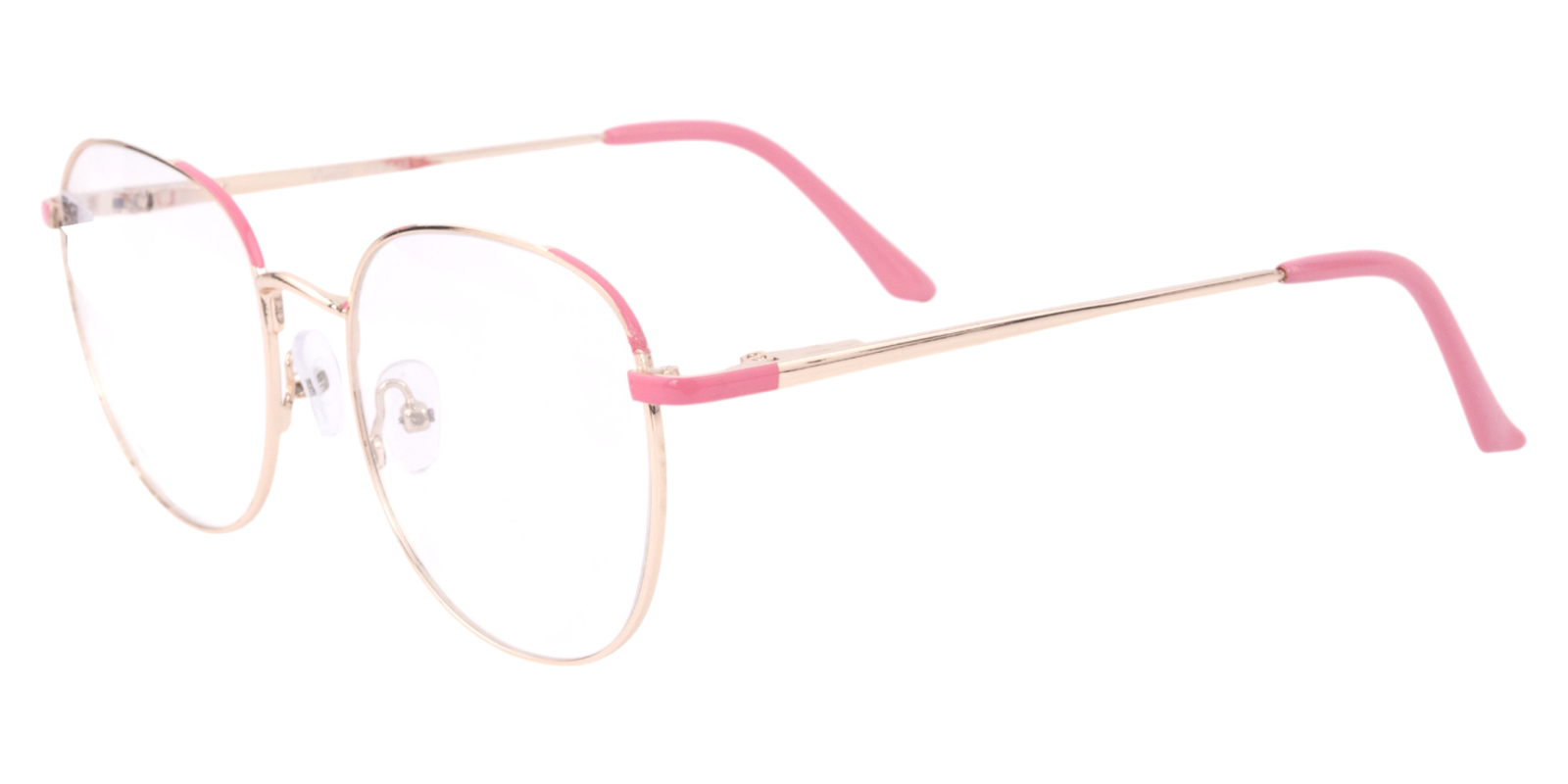 Montura de gafas con forma Redonda estilo de marco Completo, de colores Rosado, Blanco, Dorado con soporte de nariz de plaquetas