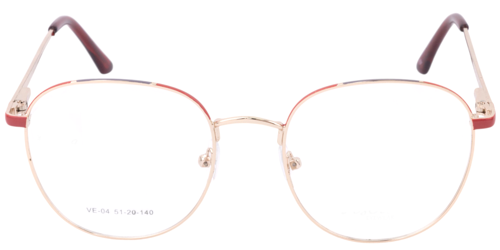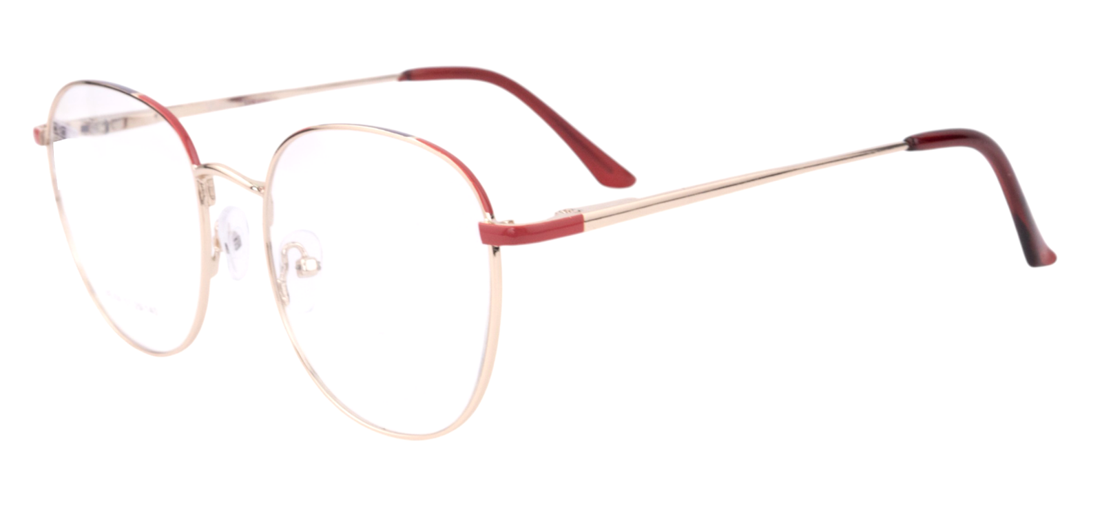 Montura de gafas con forma Redonda estilo de marco Completo, de colores Rojo, Gris, Dorado con soporte de nariz de plaquetas