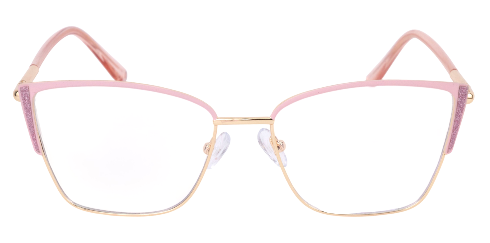 Montura de gafas con forma Agatada estilo de marco Completo, de colores Rosado, Dorado con soporte de nariz de plaquetas