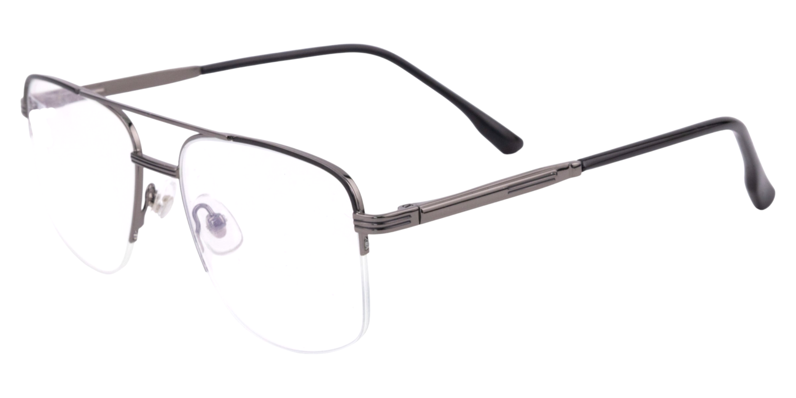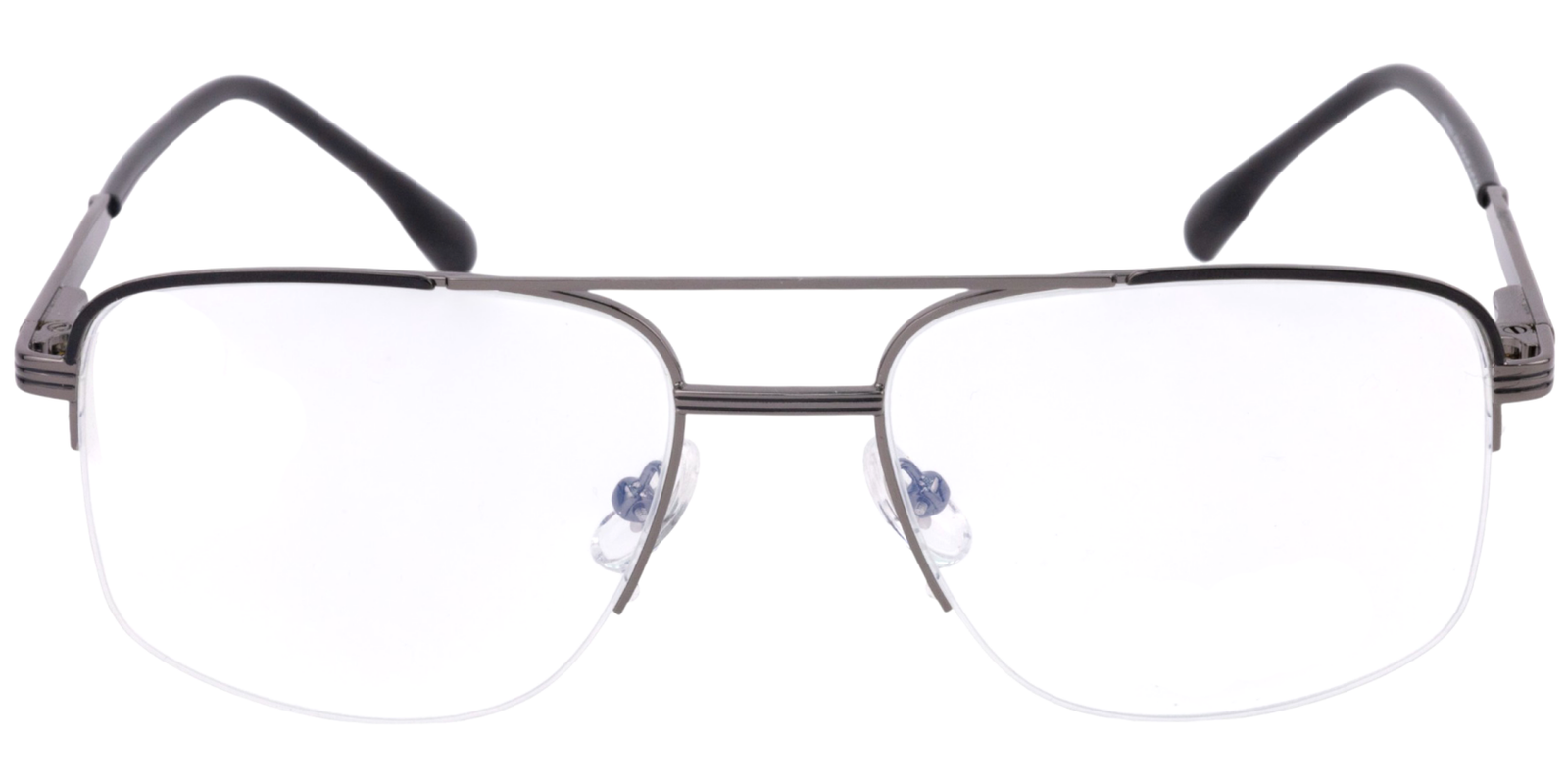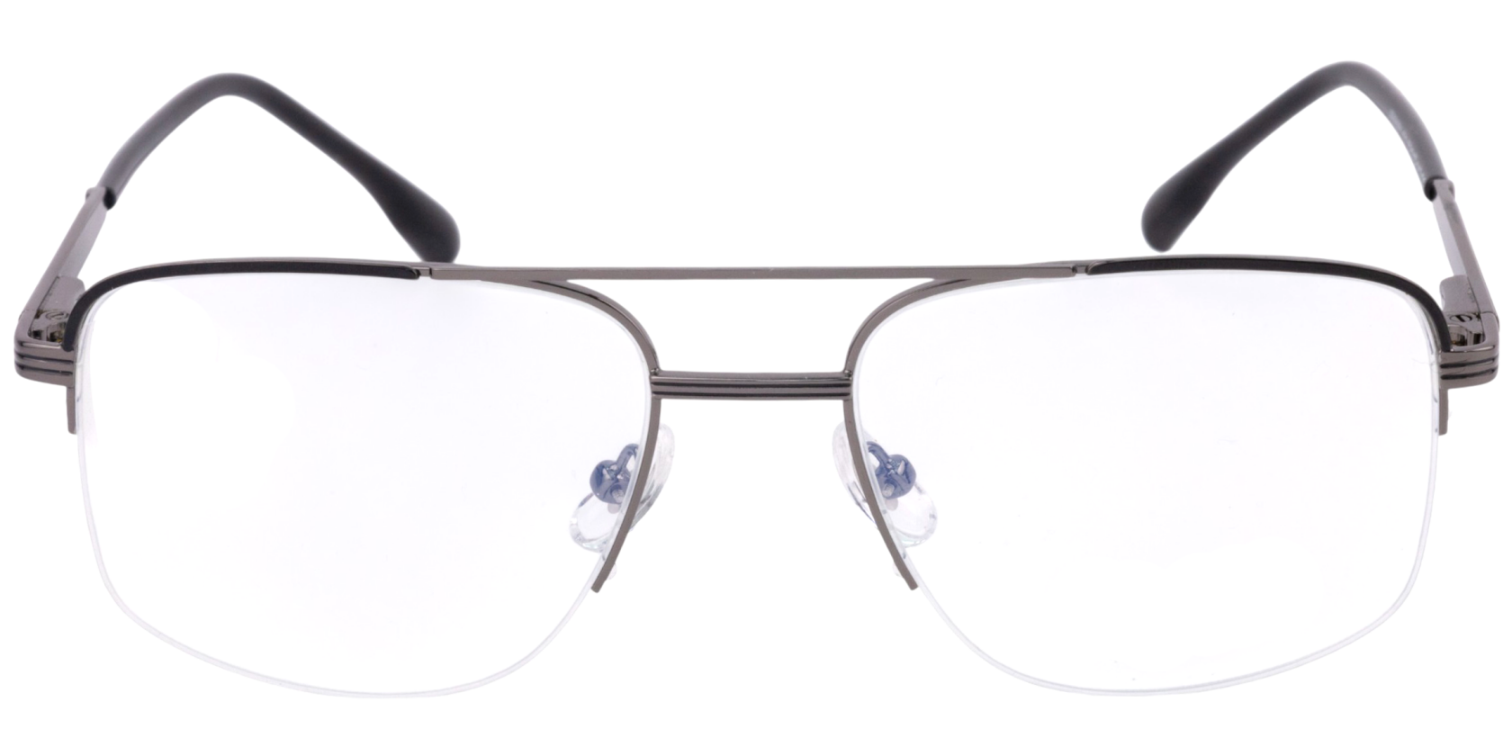 Montura de gafas con forma Rectangular estilo de marco Media Montura, de colores Negro, Plata con soporte de nariz de plaquetas