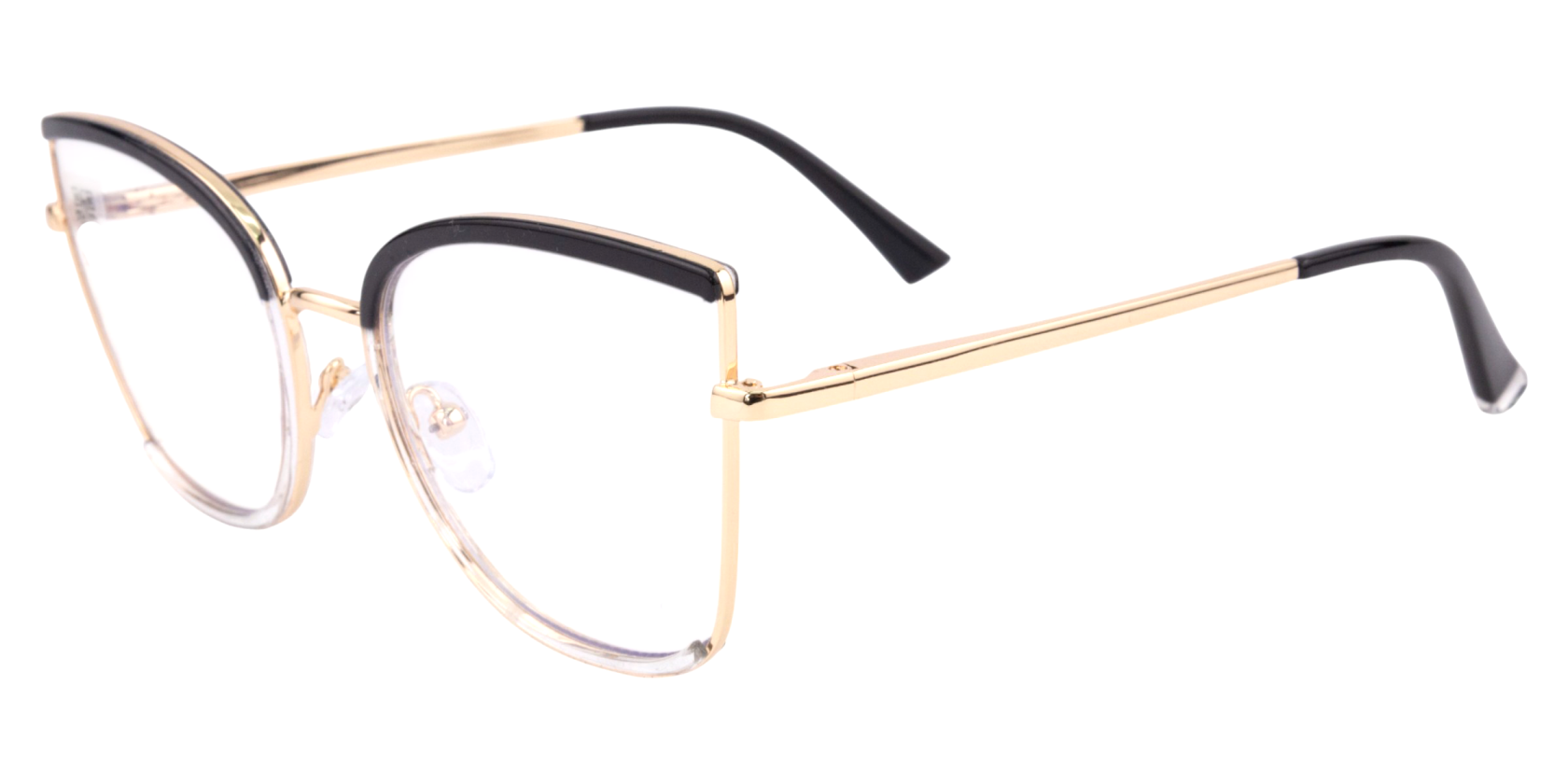 Montura de gafas con forma Agatada estilo de marco Completo, de colores Negro, Transparente, Dorado