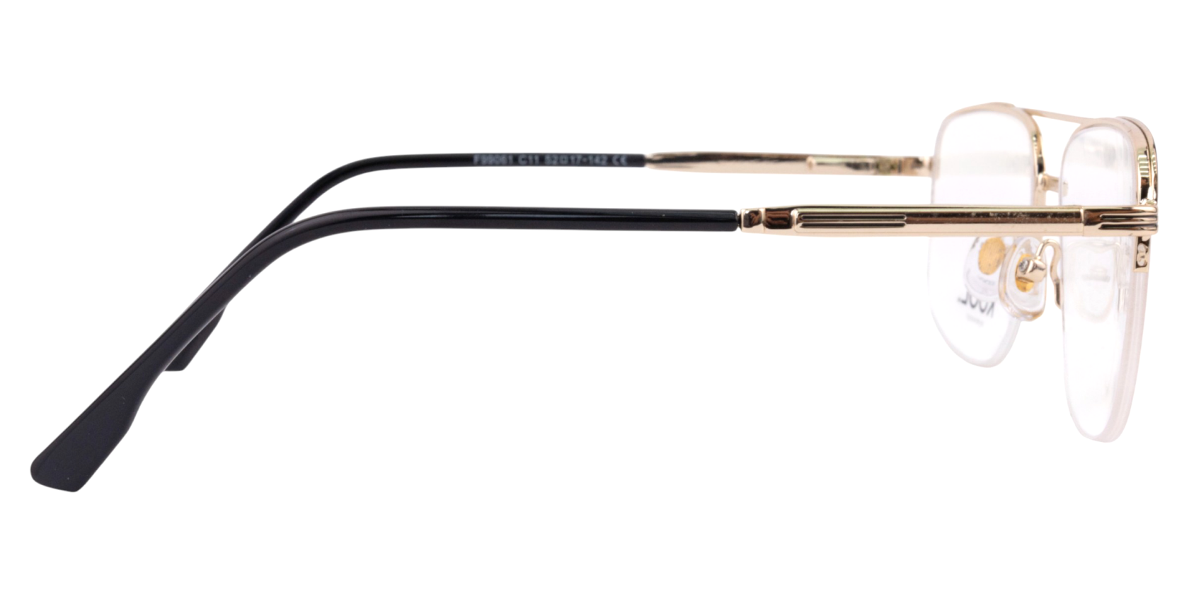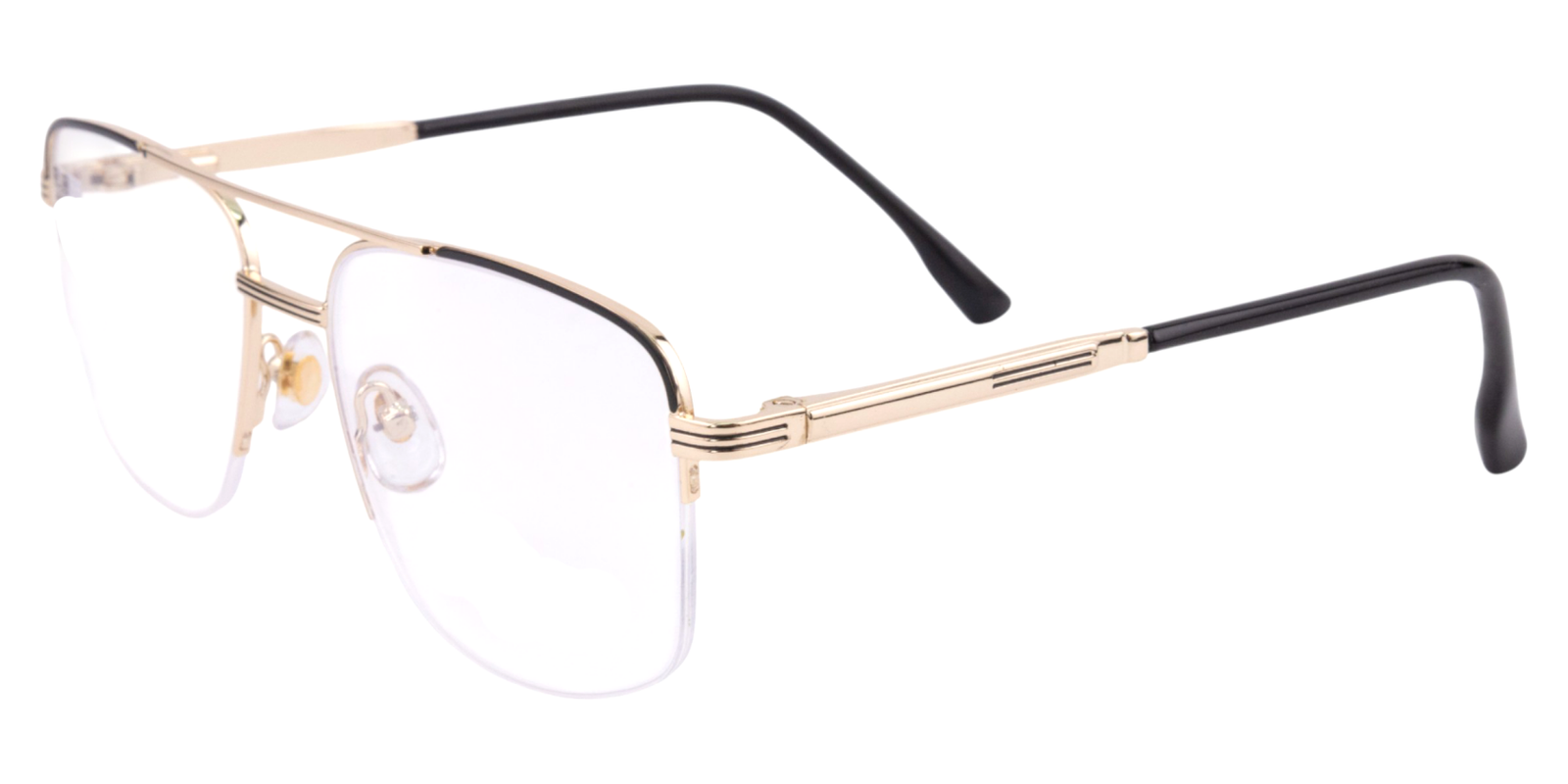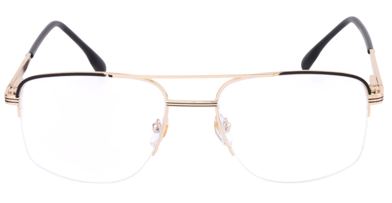 Montura de gafas con forma Rectangular estilo de marco Media Montura, de colores Negro, Dorado con soporte de nariz de plaquetas