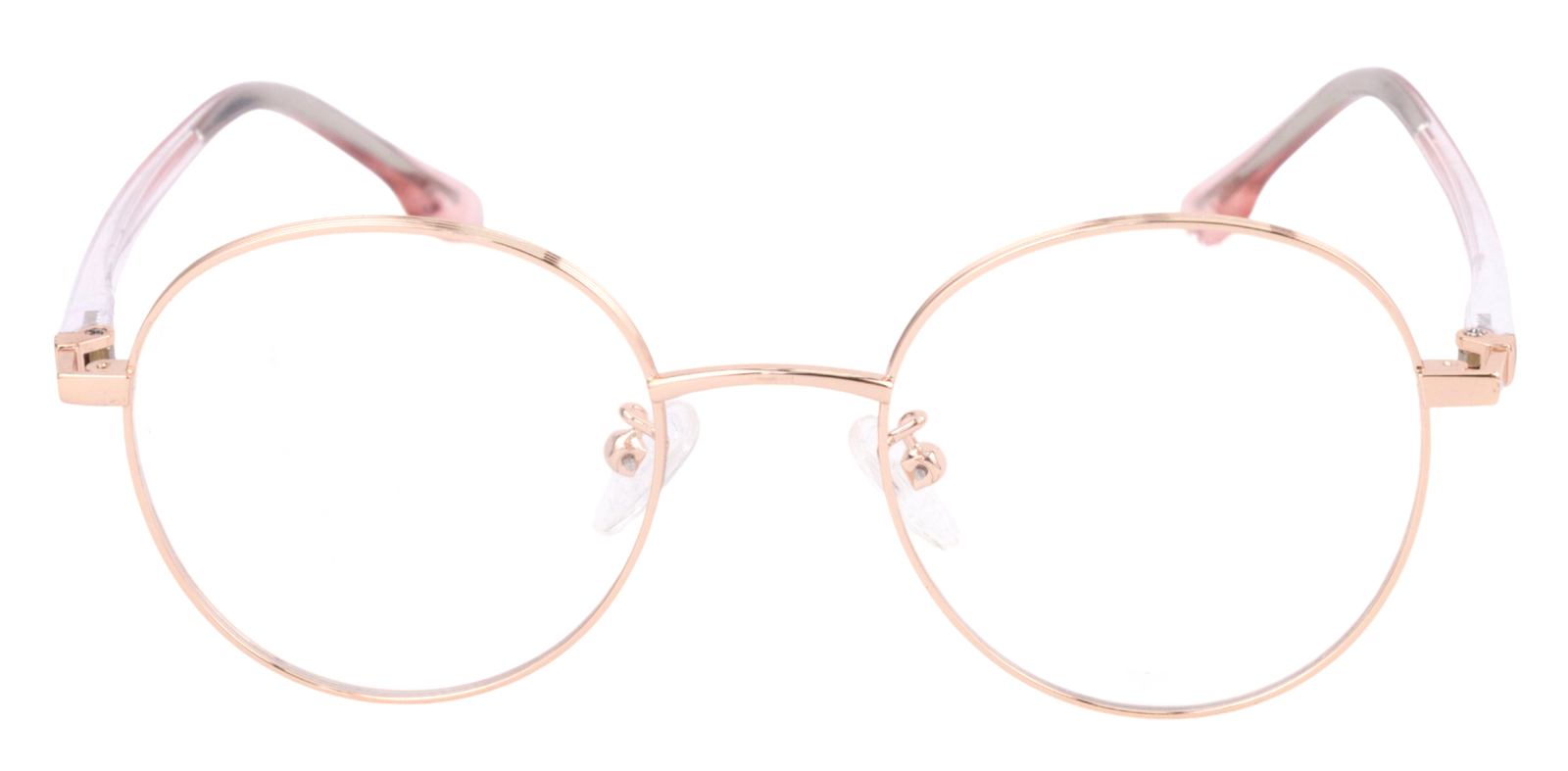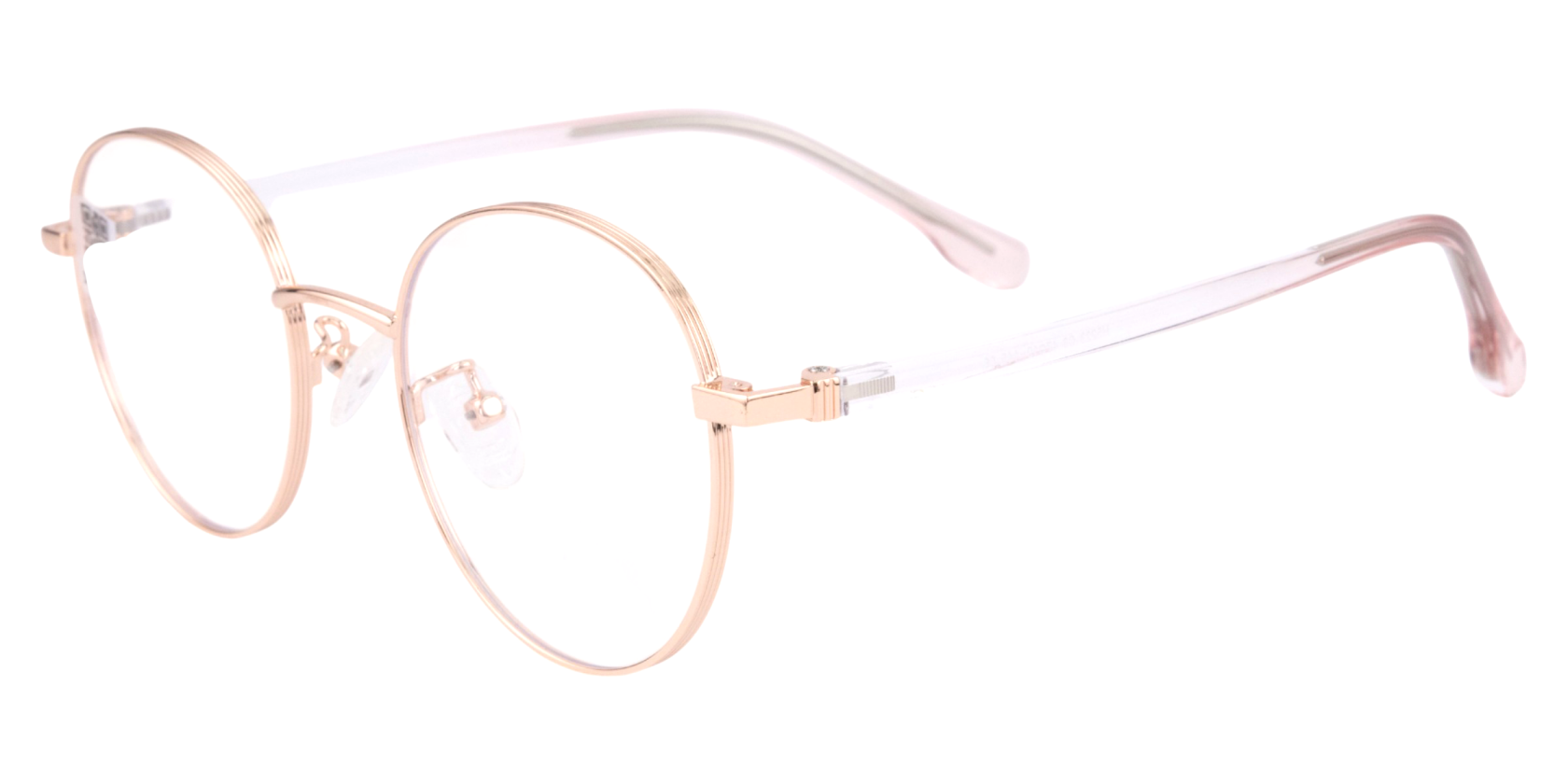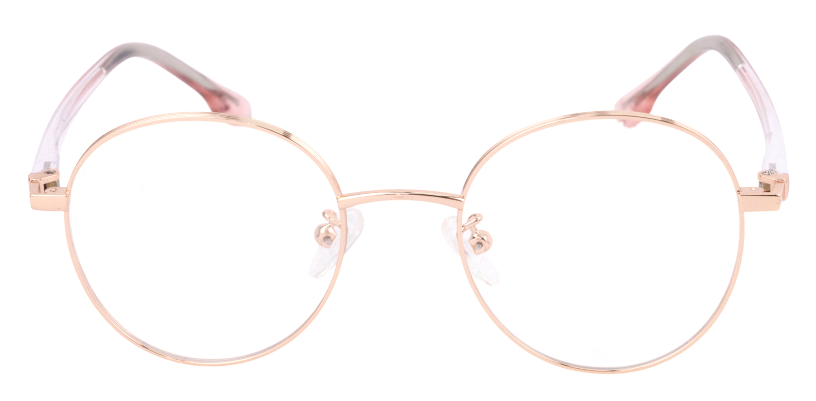 Montura de gafas con forma Redonda estilo de marco Completo, de colores Transparente, Dorado con soporte de nariz de plaquetas