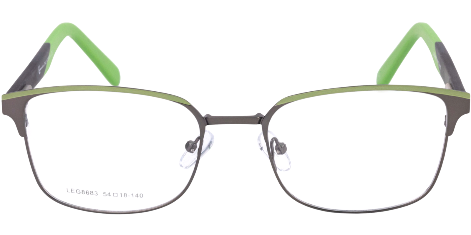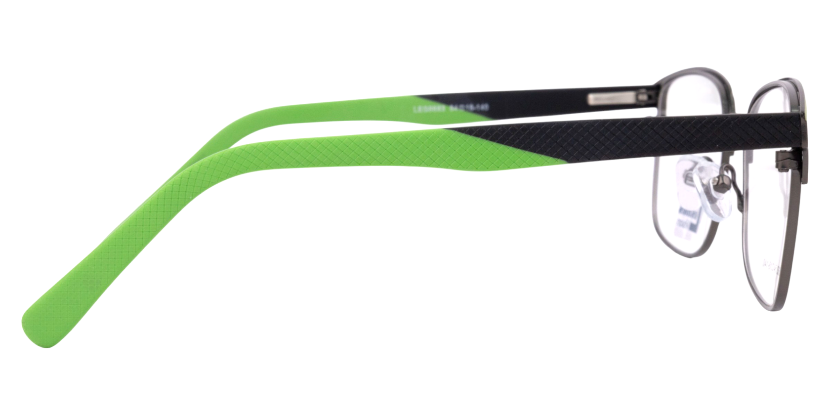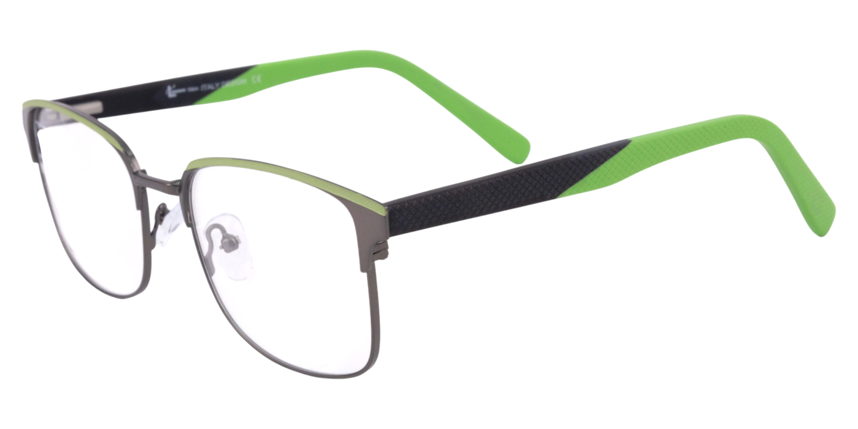 Montura de gafas con forma Rectangular estilo de marco Completo, de colores Gris, Verde Oscuro con soporte de nariz de plaquetas