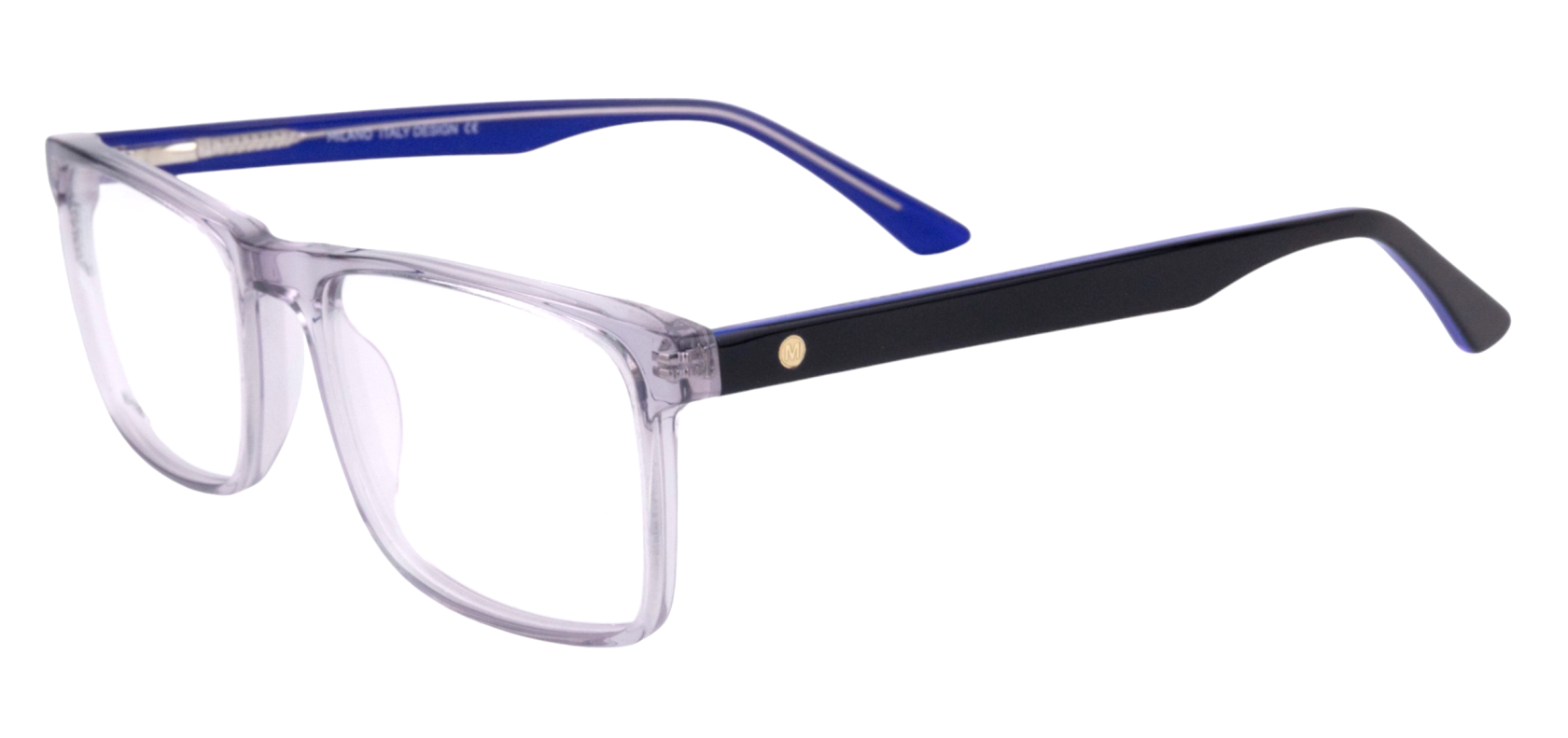 Montura de gafas con forma Rectangular estilo de marco Completo, de colores Gris, Azul Oscuro, Con transparencia