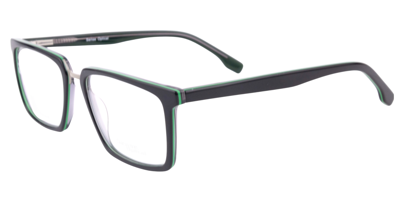 Montura de gafas con forma Rectangular estilo de marco Completo, de colores Negro, Verde Oscuro