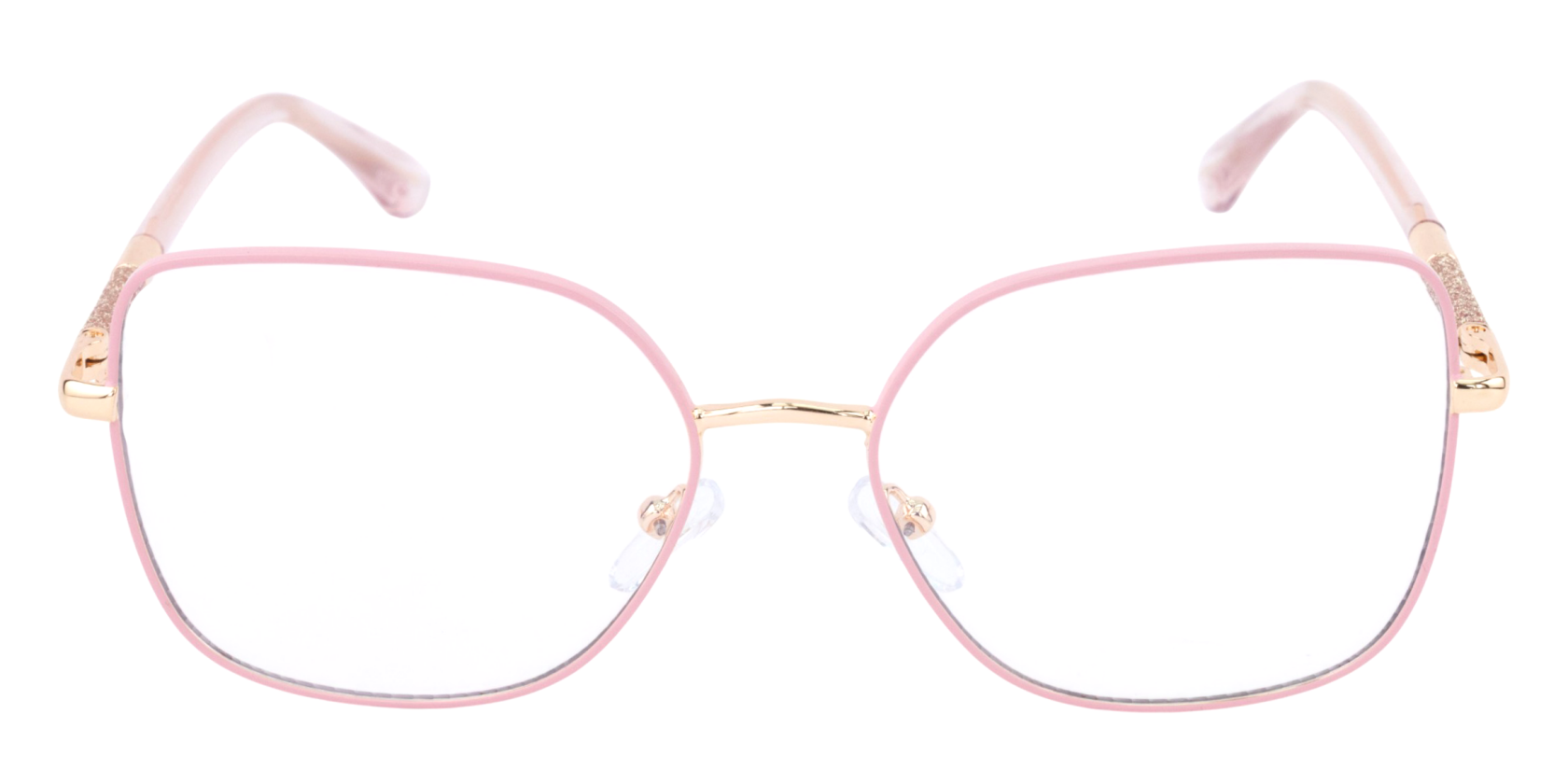 Montura de gafas con forma Cuadradas estilo de marco Completo, de colores Rosado, Dorado con soporte de nariz de plaquetas