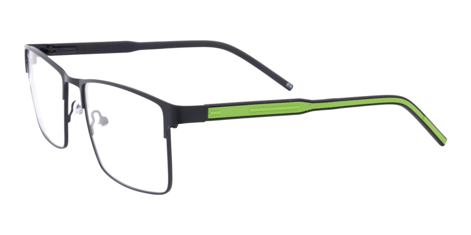 Montura de gafas con forma Rectangular estilo de marco Completo, de color Negro con soporte de nariz de plaquetas
