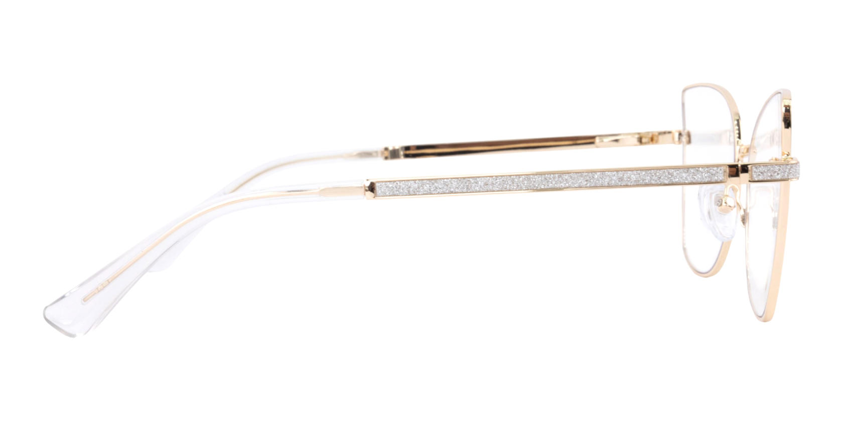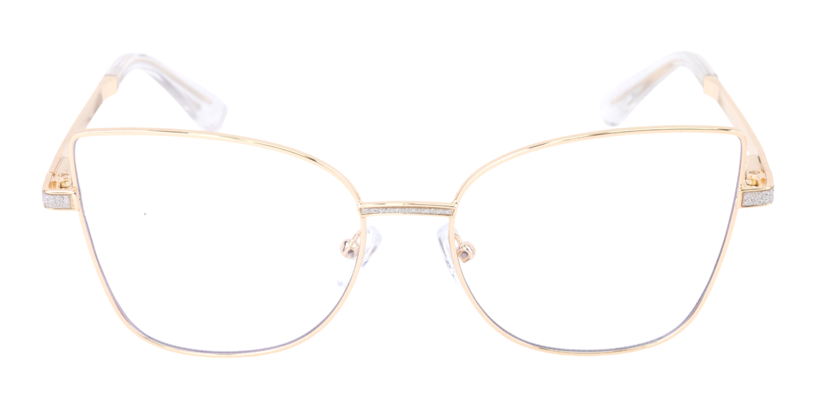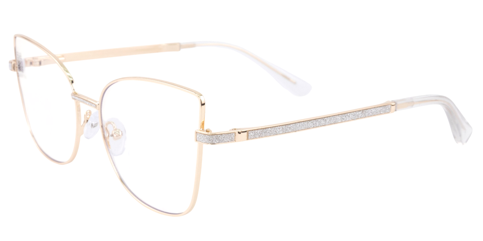 Montura de gafas con forma Agatada estilo de marco Completo, de colores Negro, Transparente, Plata con soporte de nariz de plaquetas