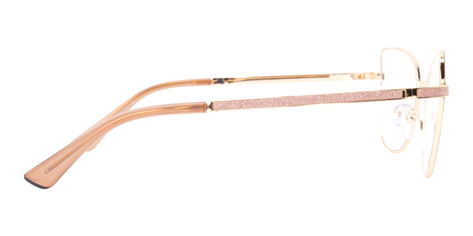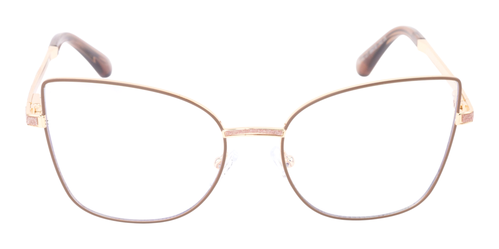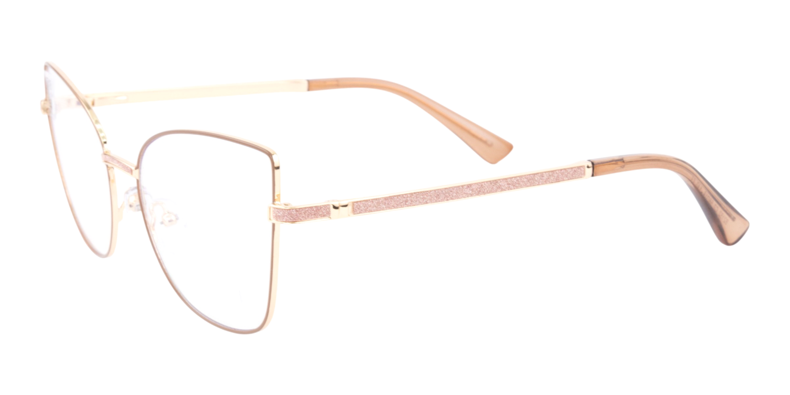 Montura de gafas con forma Agatada estilo de marco Completo, de colores Cafe, Dorado con soporte de nariz de plaquetas