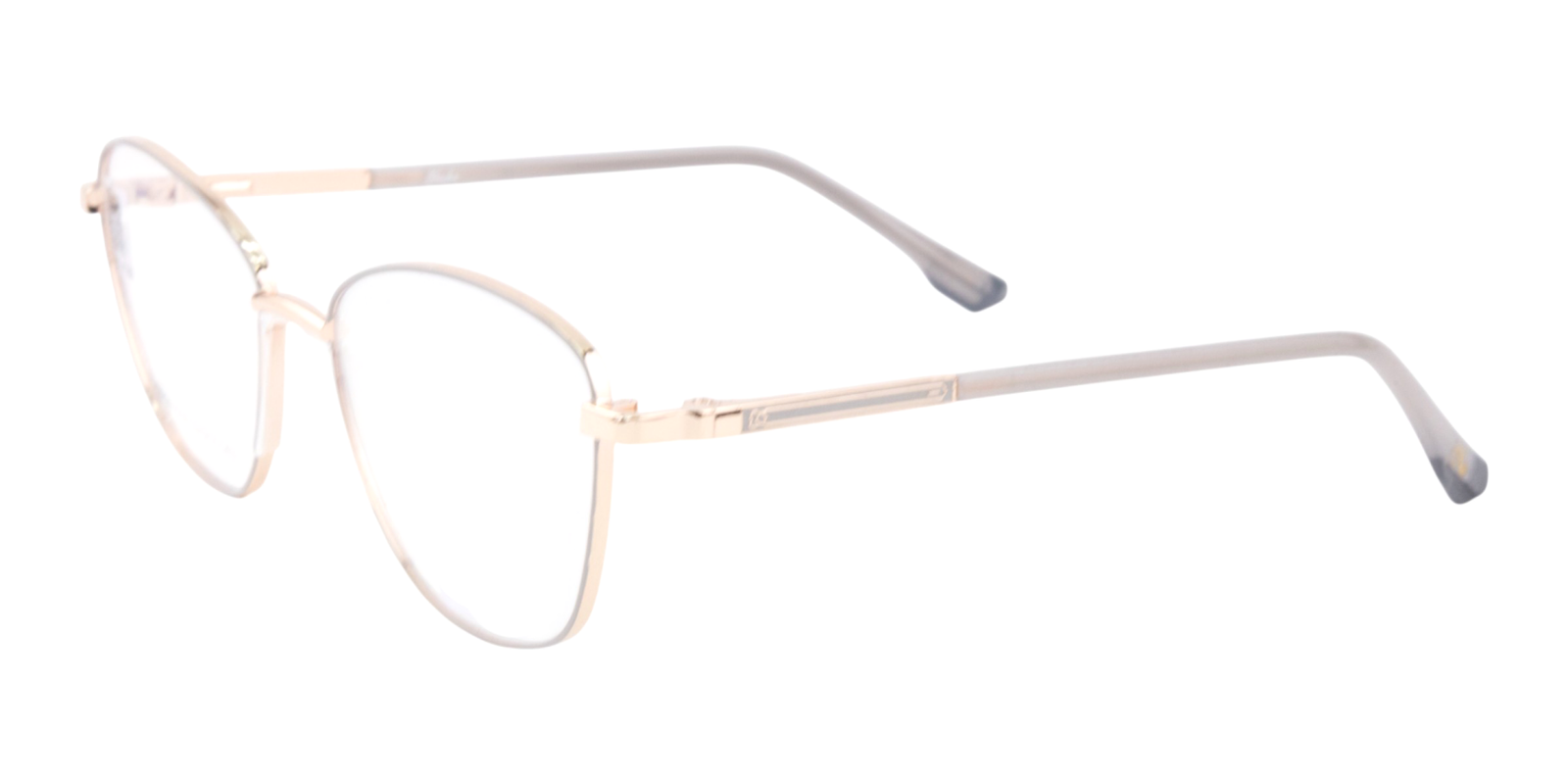 Montura de gafas con forma Ovalada estilo de marco Completo, de colores Gris, Dorado con soporte de nariz de plaquetas