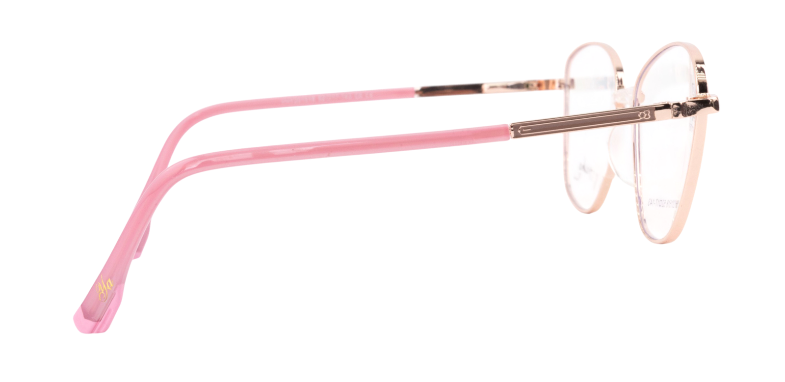 Montura de gafas con forma Ovalada estilo de marco Completo, de colores Rosado, Dorado con soporte de nariz de plaquetas