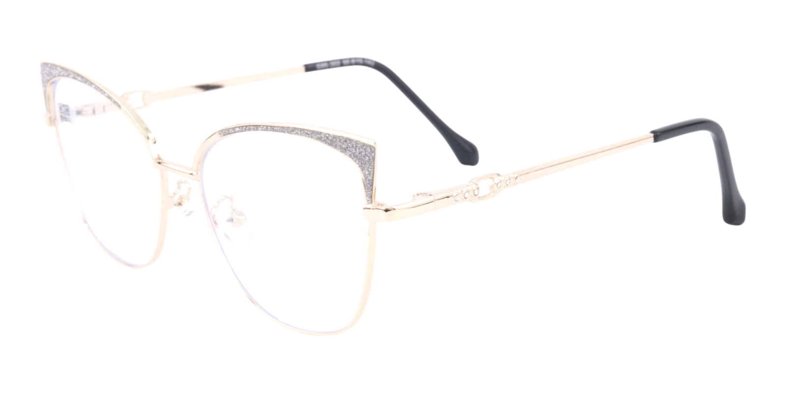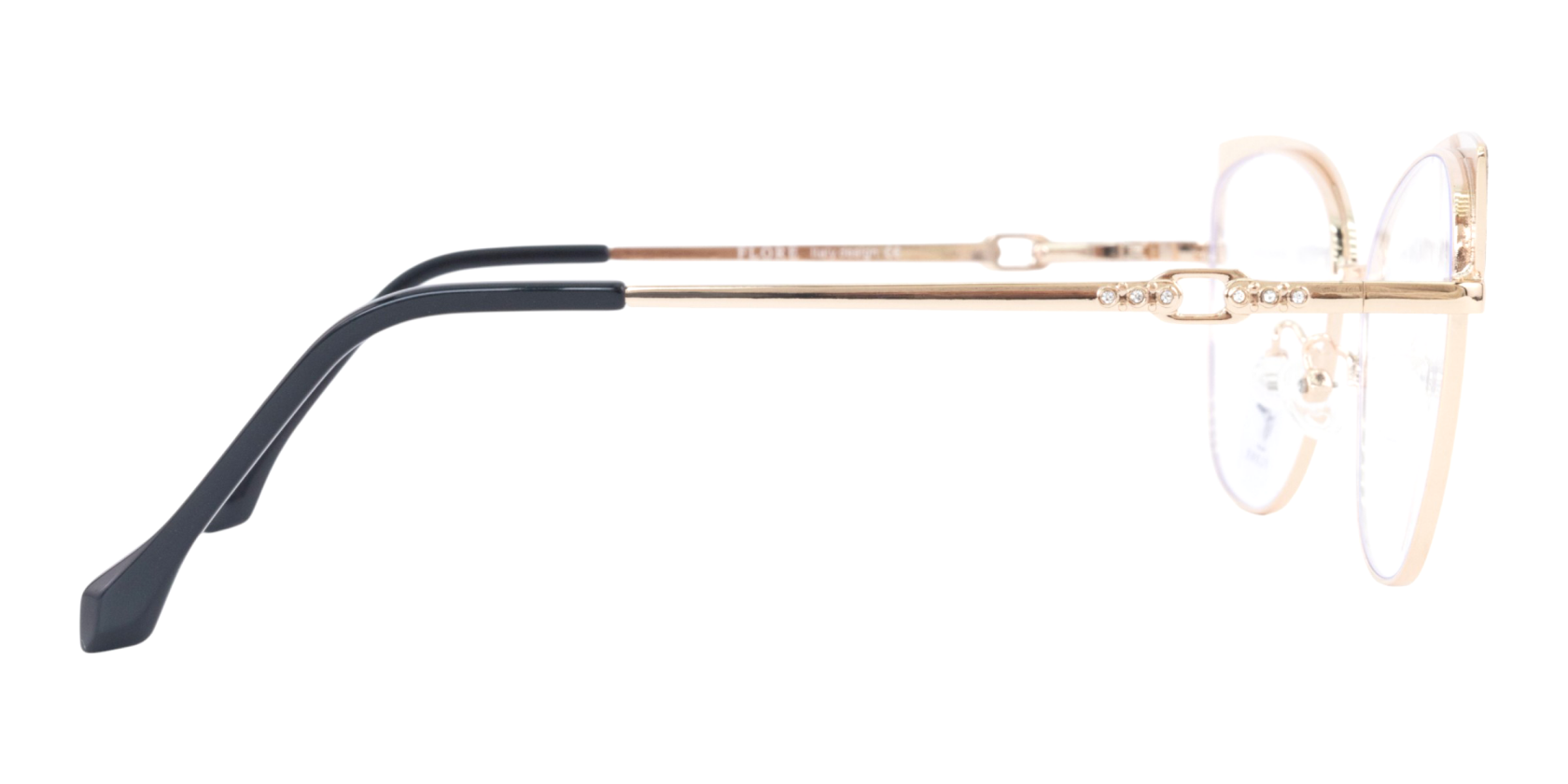Montura de gafas con forma Agatada estilo de marco Completo, de colores Negro, Dorado con soporte de nariz de plaquetas