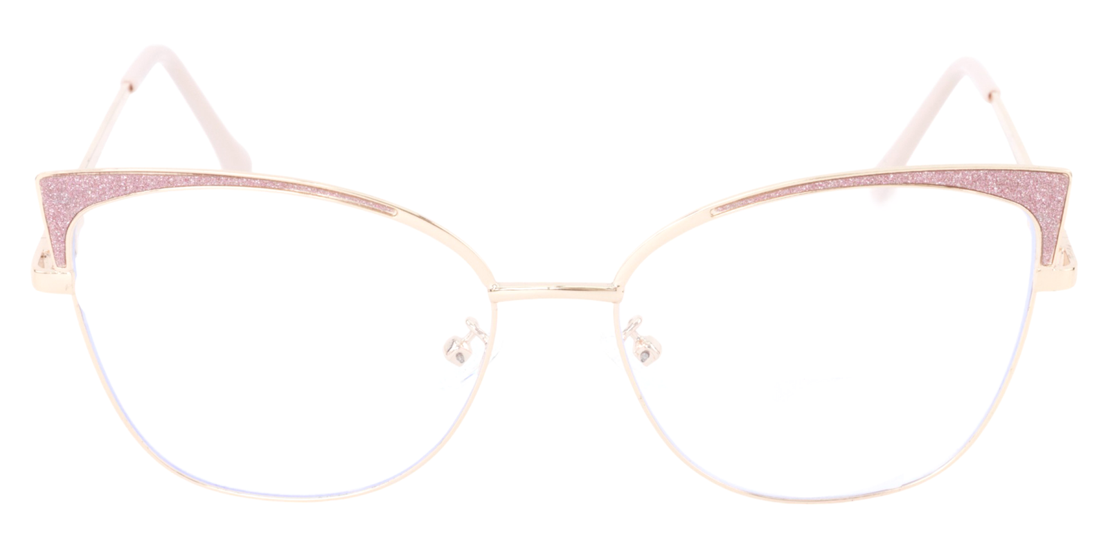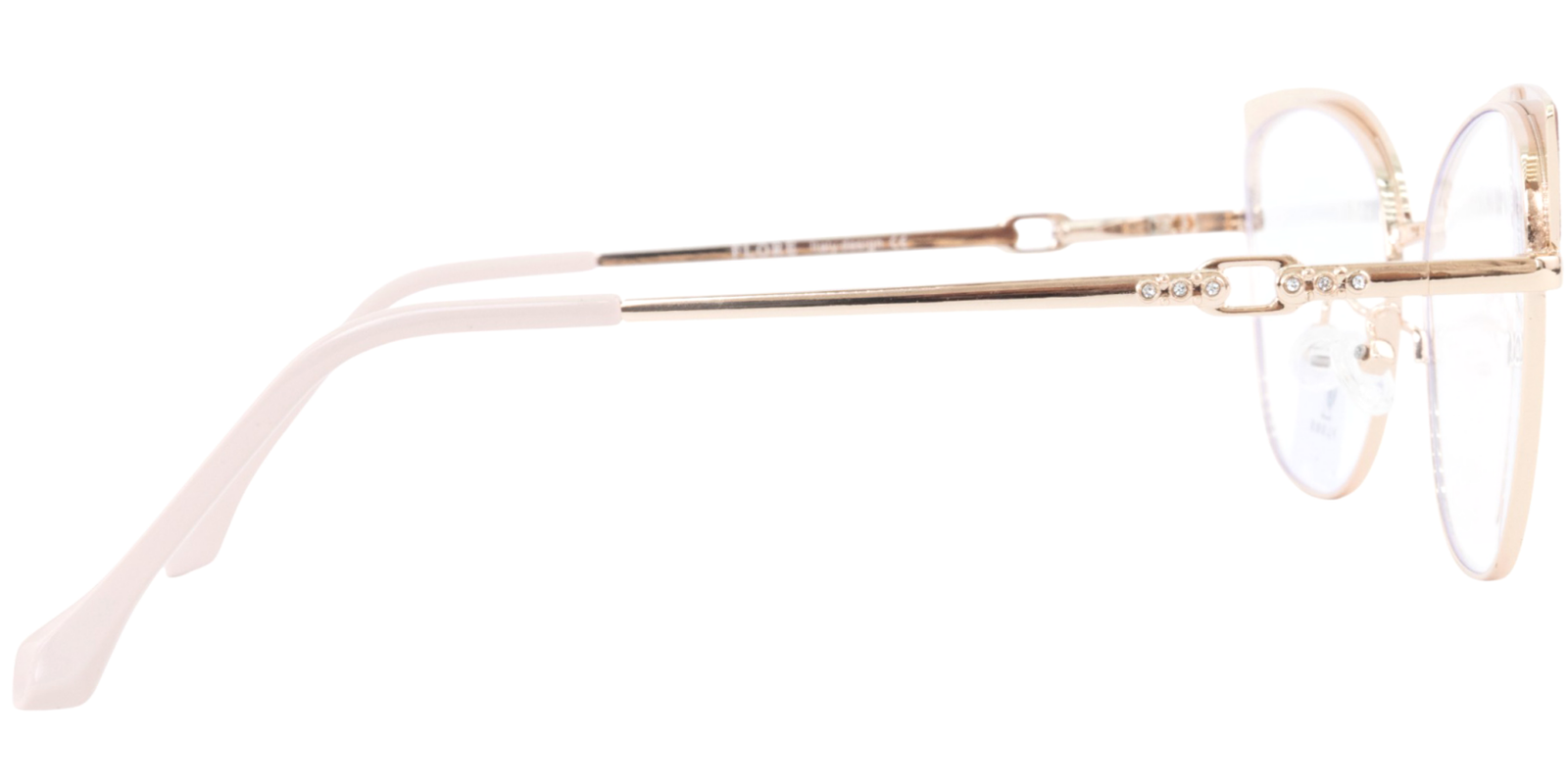 Montura de gafas con forma Agatada estilo de marco Completo, de colores Crema, Dorado con soporte de nariz de plaquetas