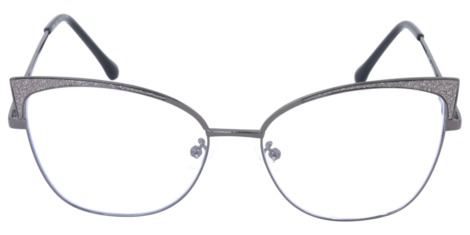 Montura de gafas con forma Agatada estilo de marco Completo, de color Negro con soporte de nariz de plaquetas