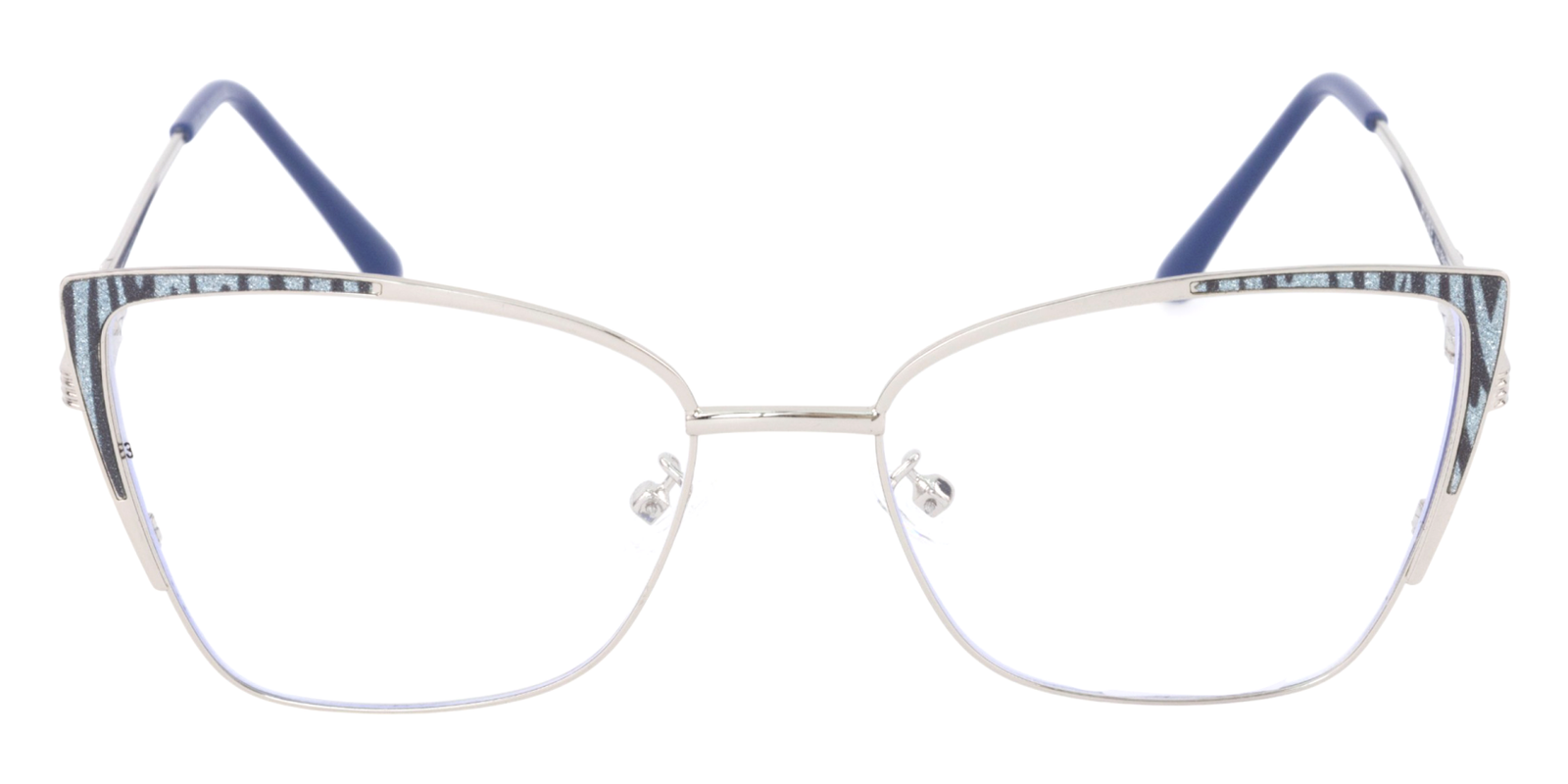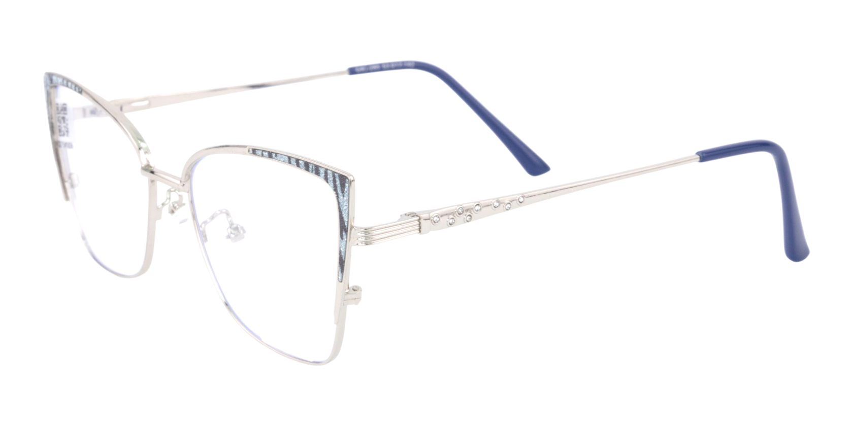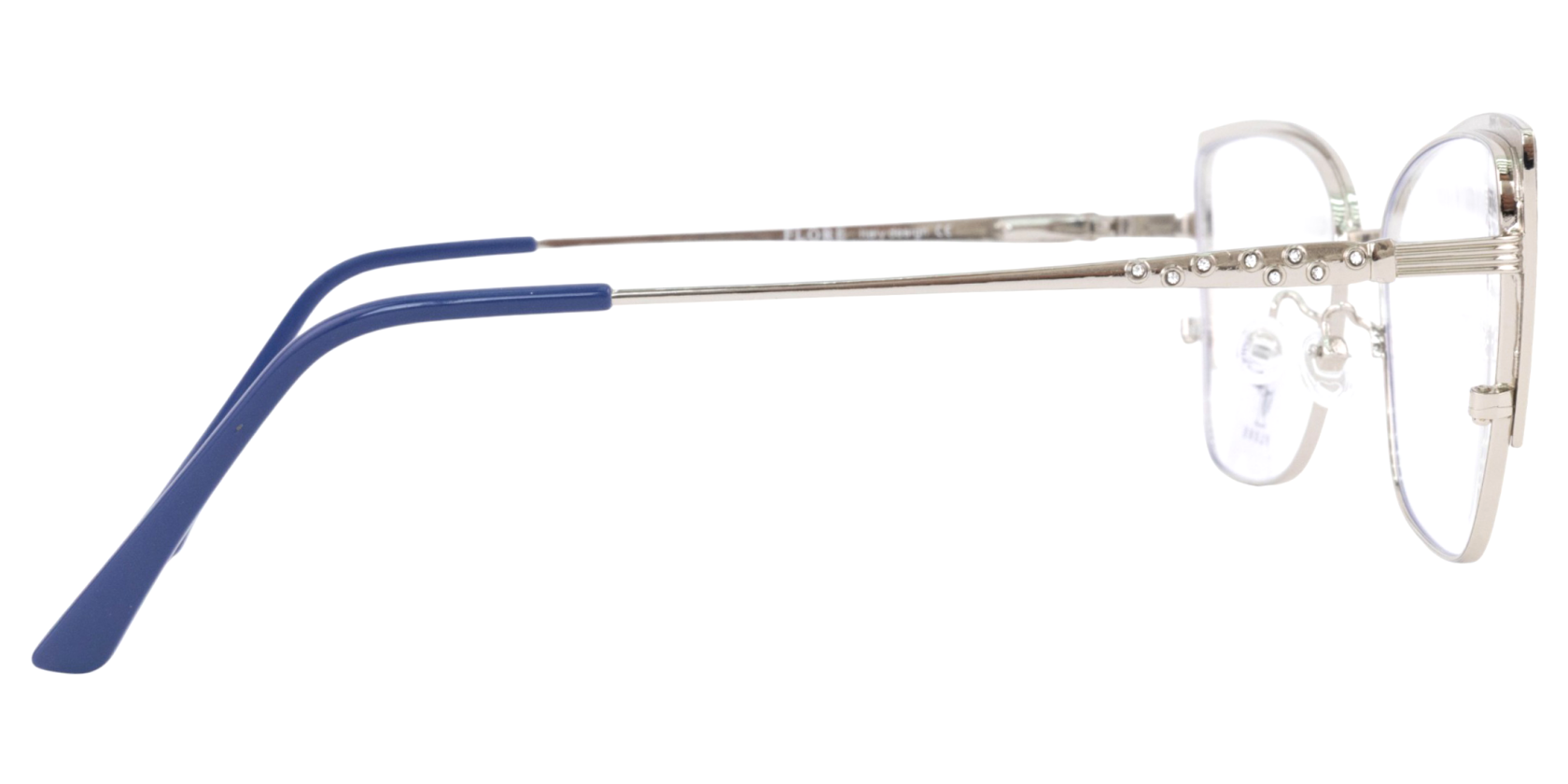 Montura de gafas con forma Agatada estilo de marco Completo, de colores Azul, Plata con soporte de nariz de plaquetas