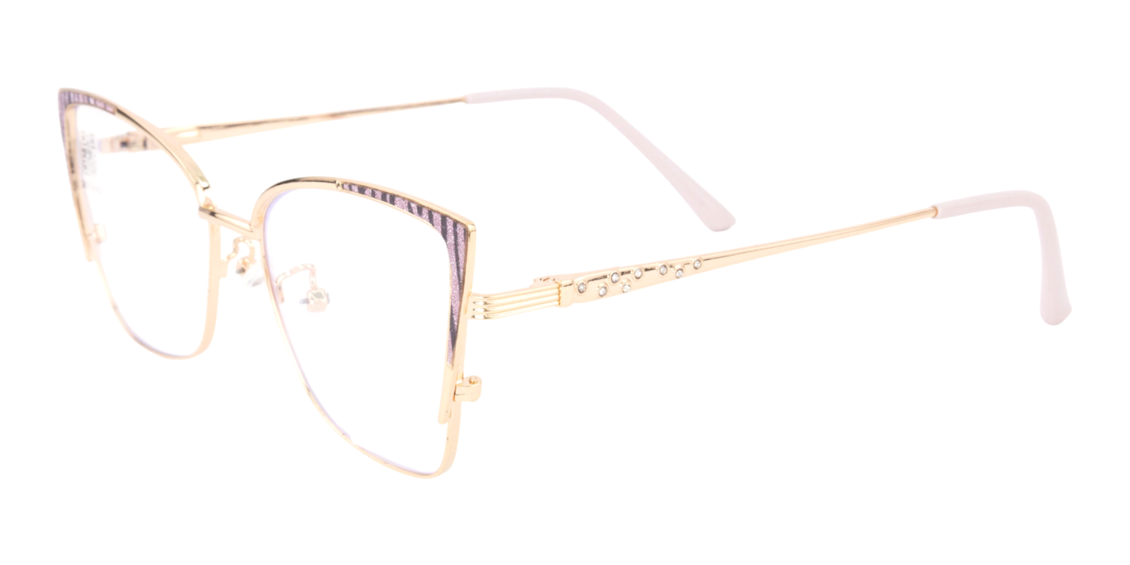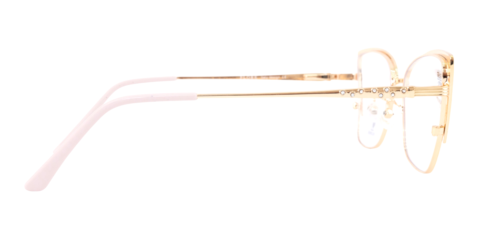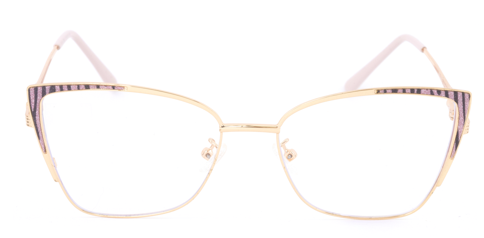 Montura de gafas con forma Agatada estilo de marco Completo, de colores Rosado, Dorado con soporte de nariz de plaquetas