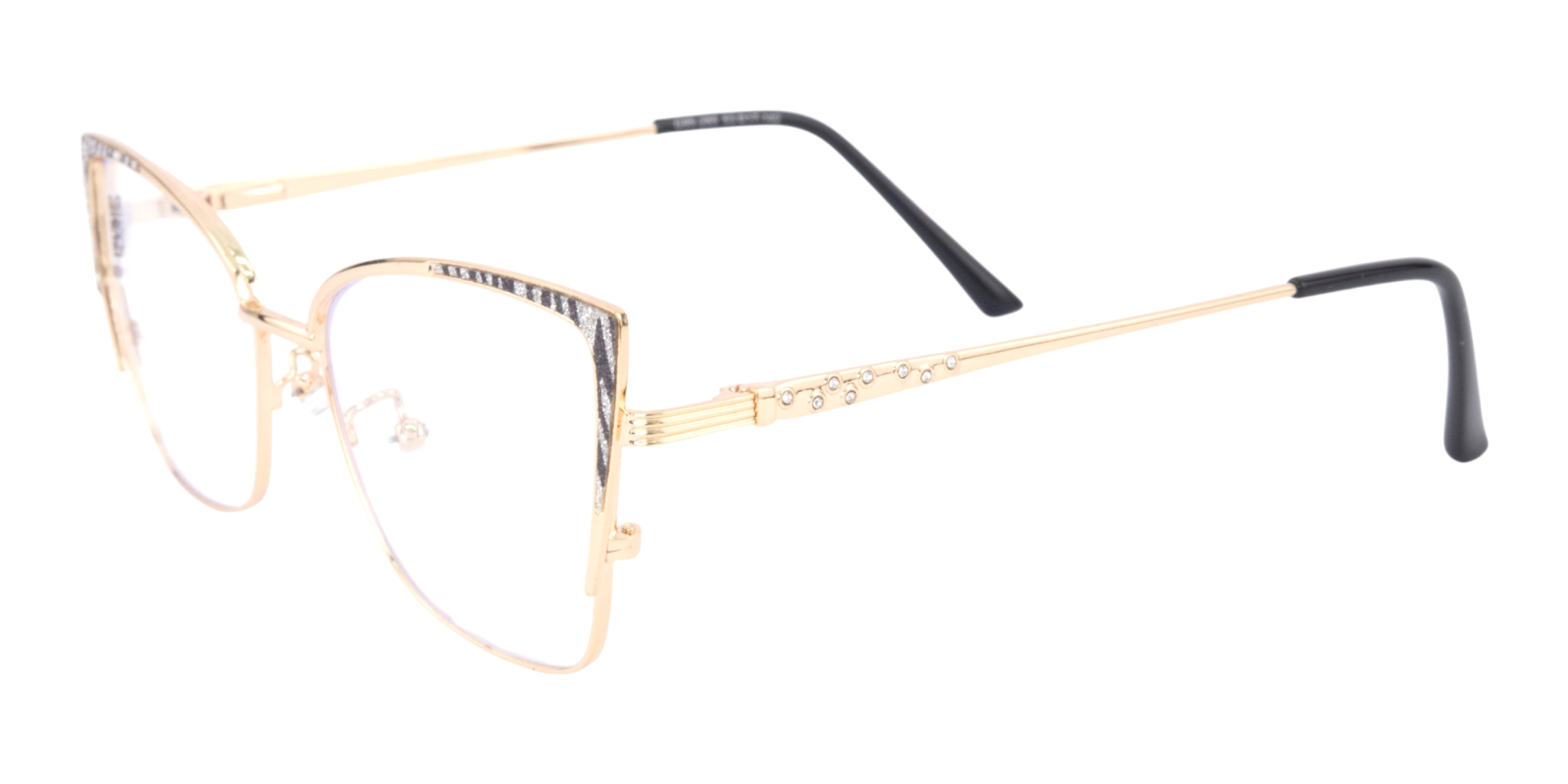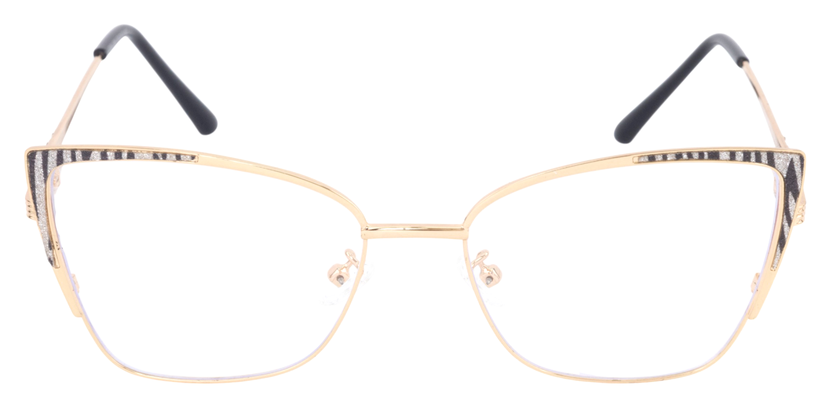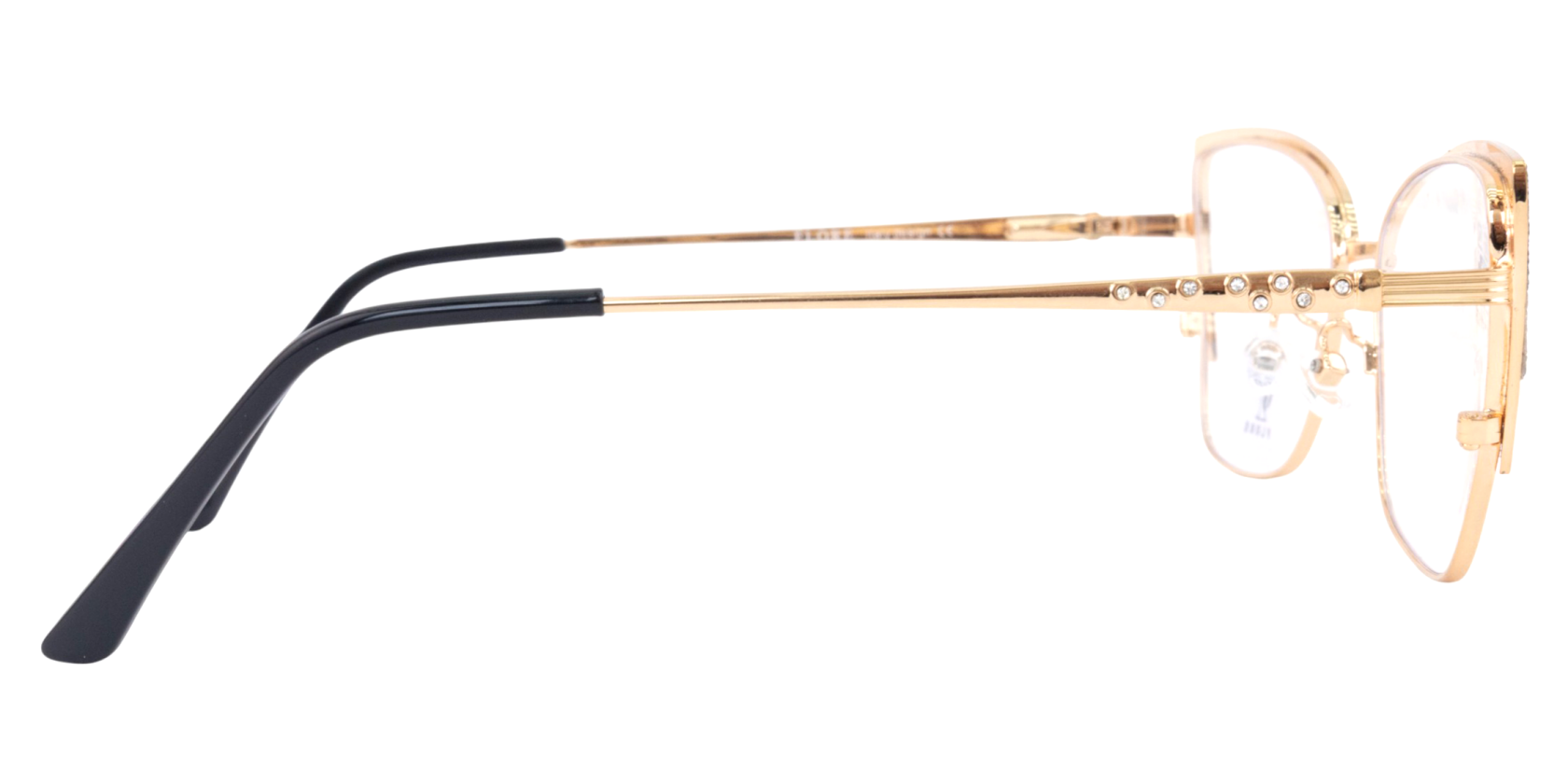 Montura de gafas con forma Agatada estilo de marco Completo, de colores Negro, Dorado con soporte de nariz de plaquetas
