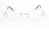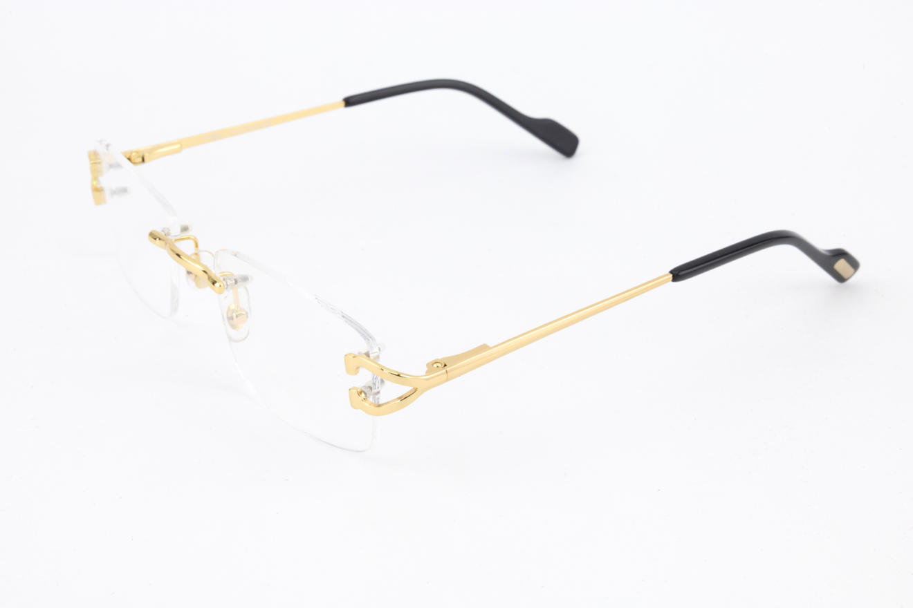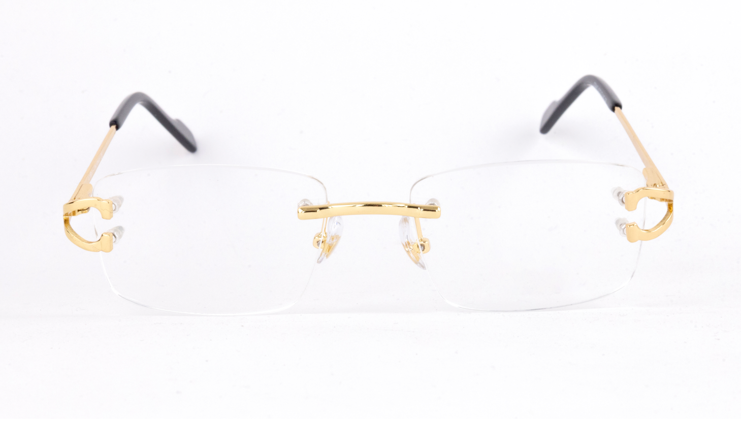 Montura de gafas con forma Rectangular estilo de marco Al aire, de color Dorado con soporte de nariz de plaquetas