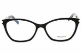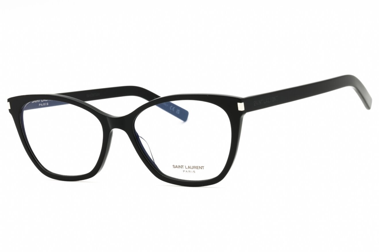 Montura de gafas marca YVES SAINT LAURENT con forma Agatada estilo de marco Completo, de color Negro