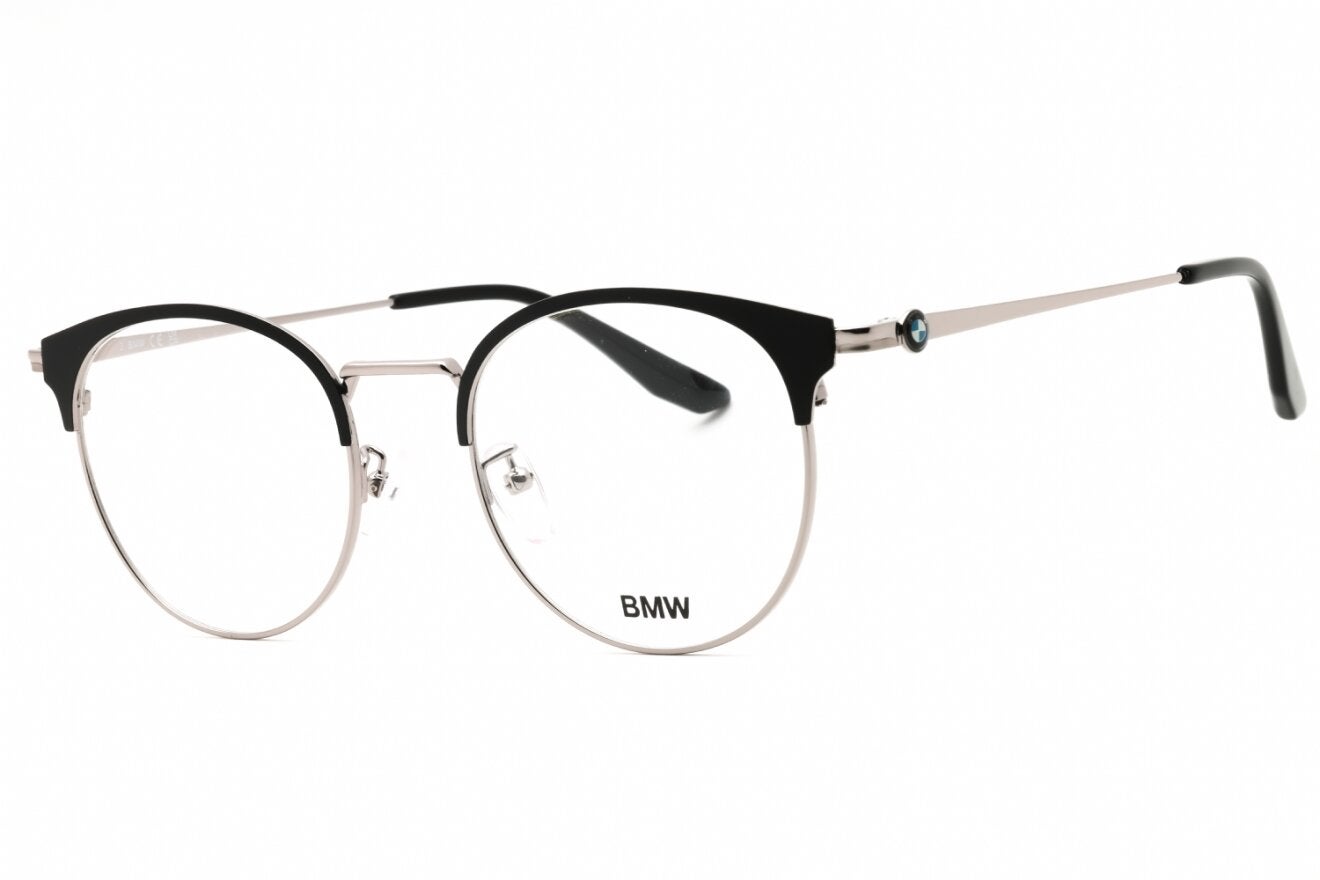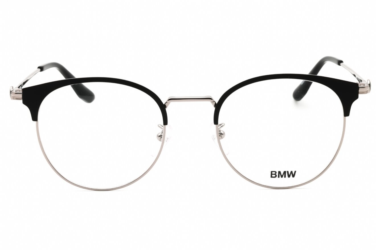 Montura de gafas marca BMW con forma Clubmaster estilo de marco Media Montura, de colores Negro, Plata