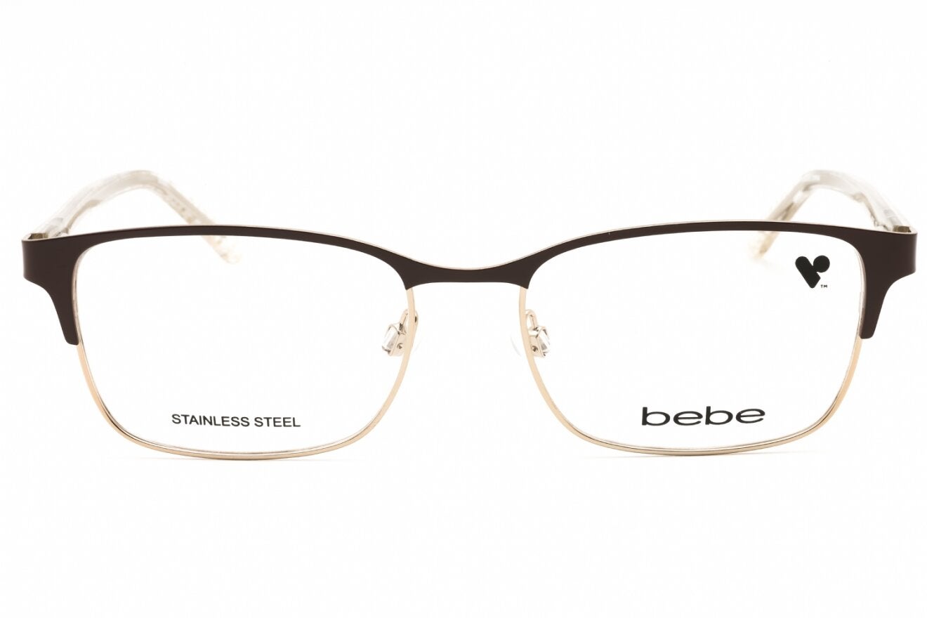 Montura de gafas marca BEBE con forma Clubmaster estilo de marco Media Montura, de colores Negro, Dorado
