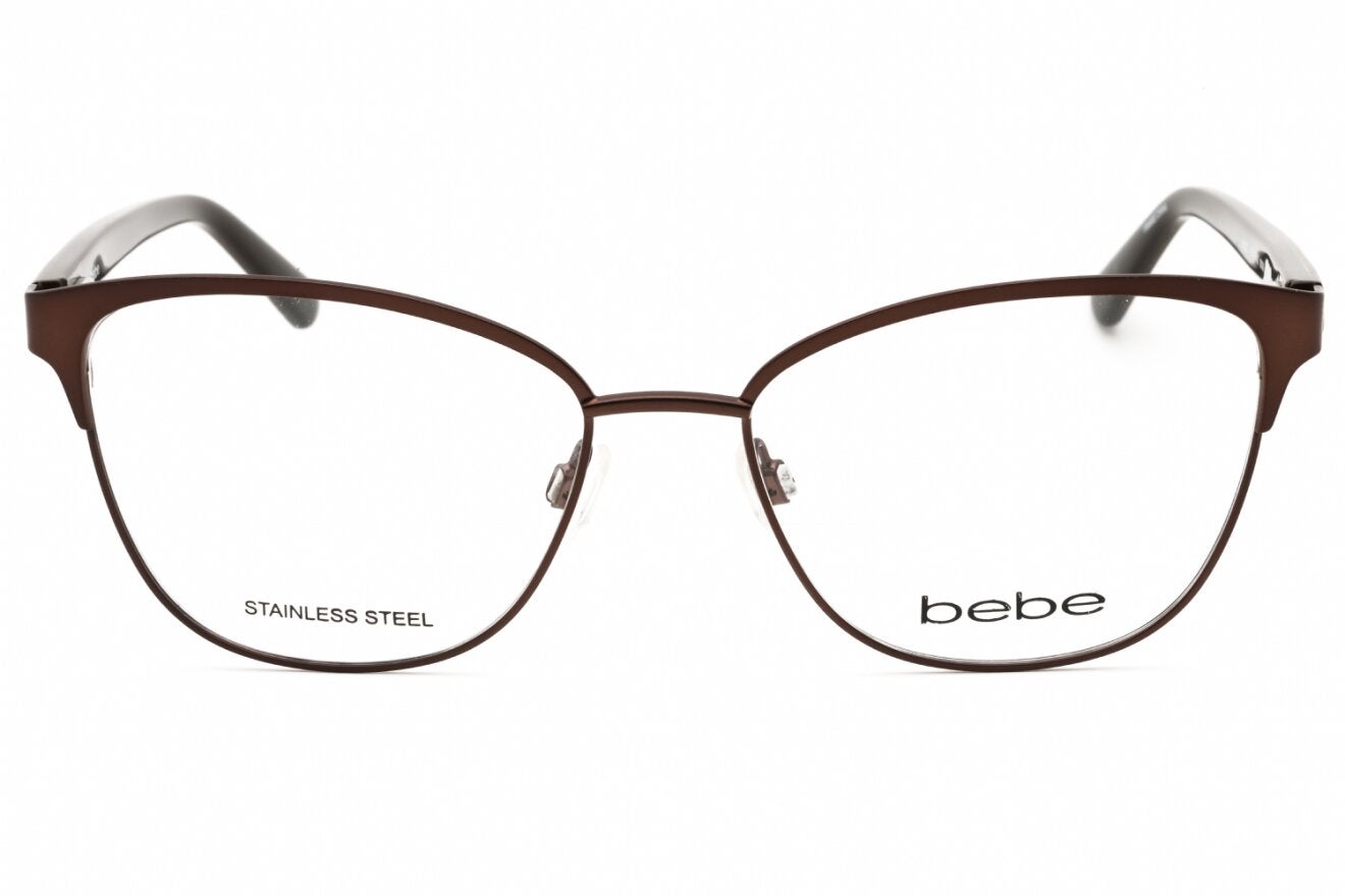 Montura de gafas marca BEBE con forma Clubmaster estilo de marco Media Montura, de colores Negro, Cafe