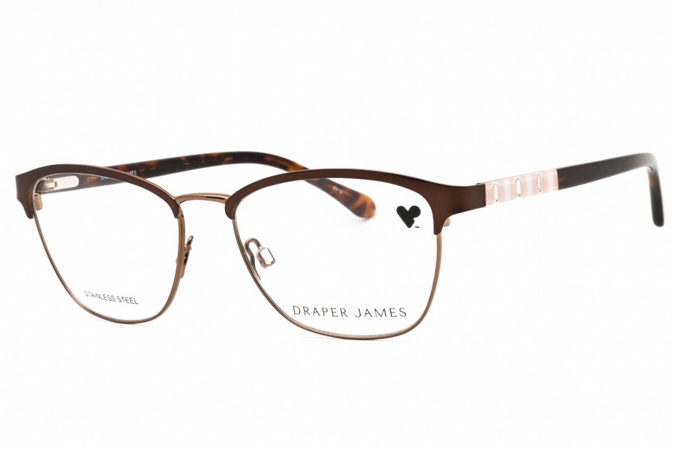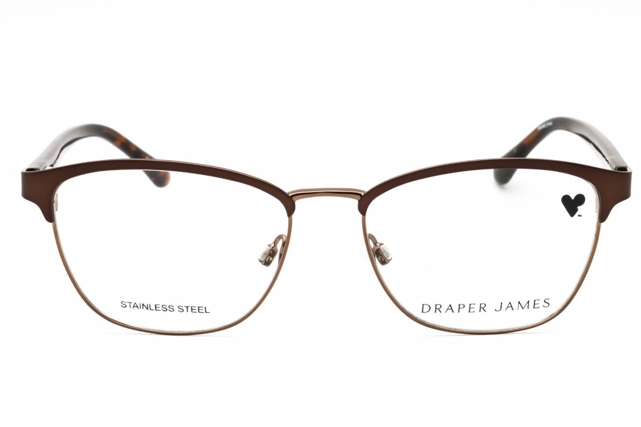Montura de gafas marca DRAPER JAMES con forma Clubmaster estilo de marco Media Montura, de colores Rosado, Cafe
