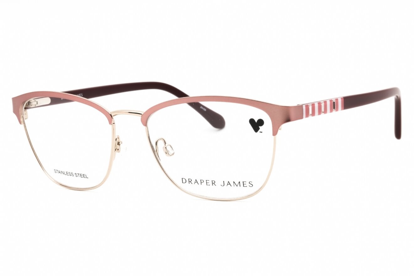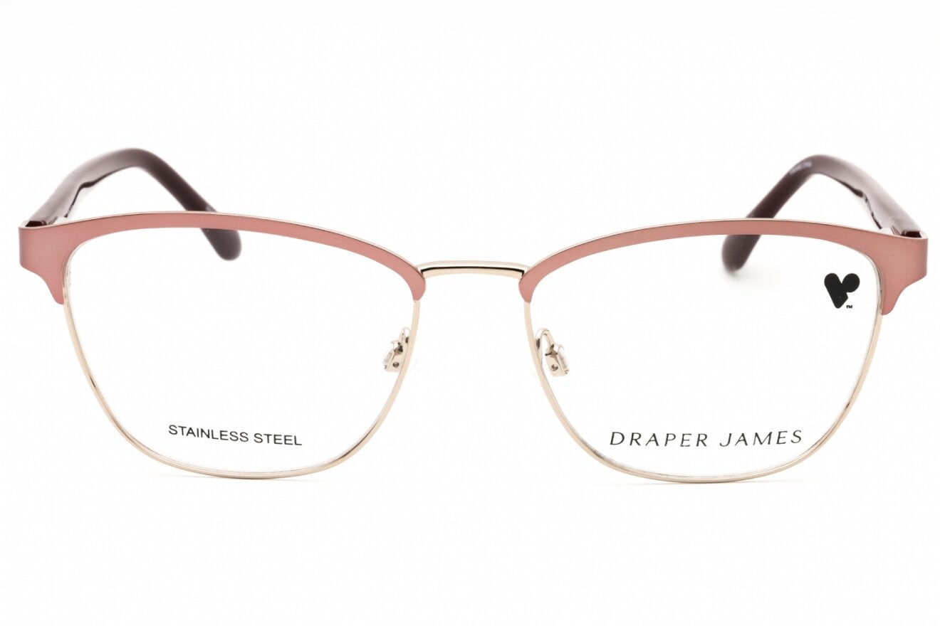 Montura de gafas marca DRAPER JAMES con forma Clubmaster estilo de marco Media Montura, de colores Rosado, Plata