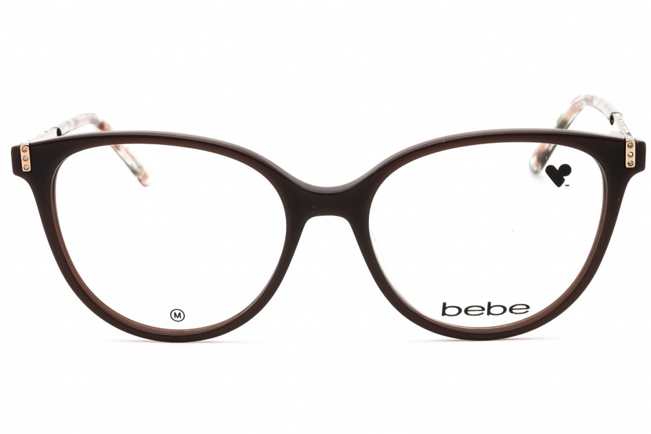 Montura de gafas marca BEBE con forma Agatada estilo de marco Completo, de colores Cafe, Animal Print