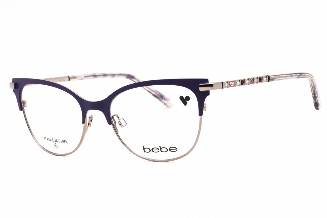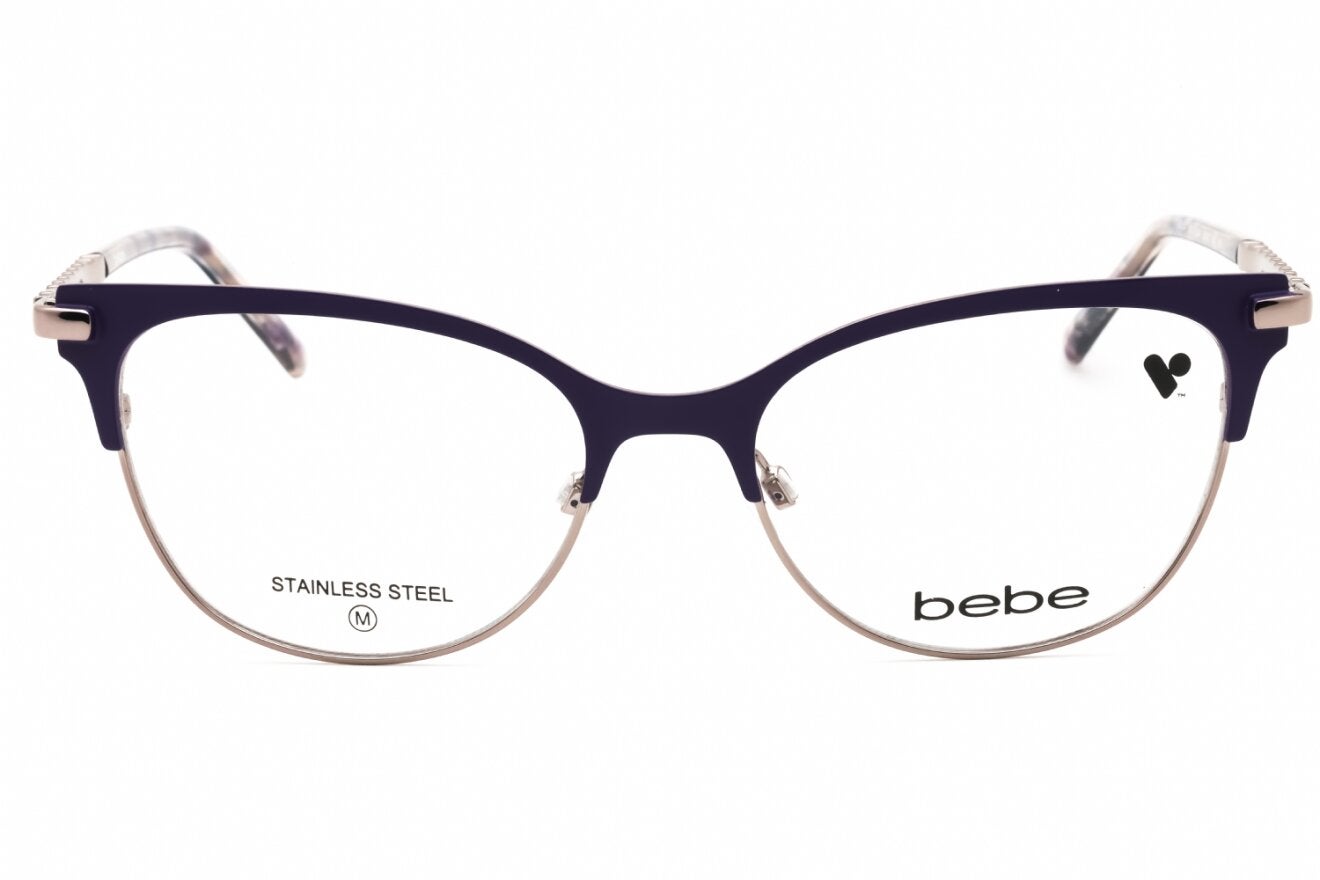 Montura de gafas marca BEBE con forma Clubmaster estilo de marco Media Montura, de colores Negro, Plata